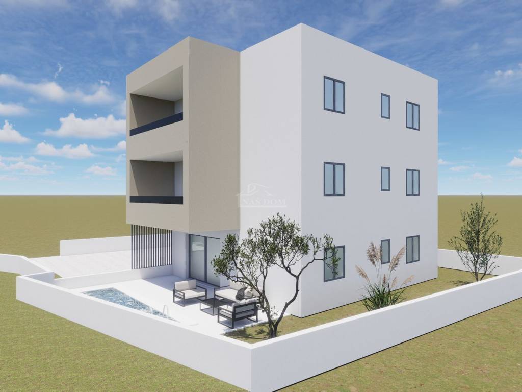 Vodice **PRE-SALE** *NEW BUILD* an apartment S1 on the ground floor is for sale in a smaller residential building. The building with a modern appearance will be constructed using quality materials and will be equipped according to the latest construction standards. It is located in a quiet area, approximately 1000 m from the center of Vodice and the beach. The planned start of construction is September 2026, and the planned completion of works is the end of 2027. The building has a total of three residential units, and each apartment occupies an entire floor of the building. The apartments are ideal for living, vacation, and/or rental.