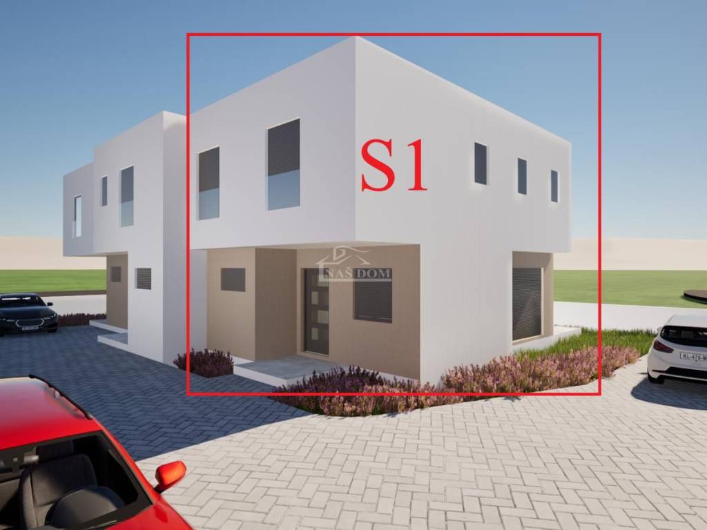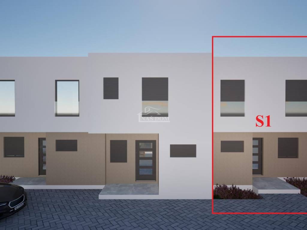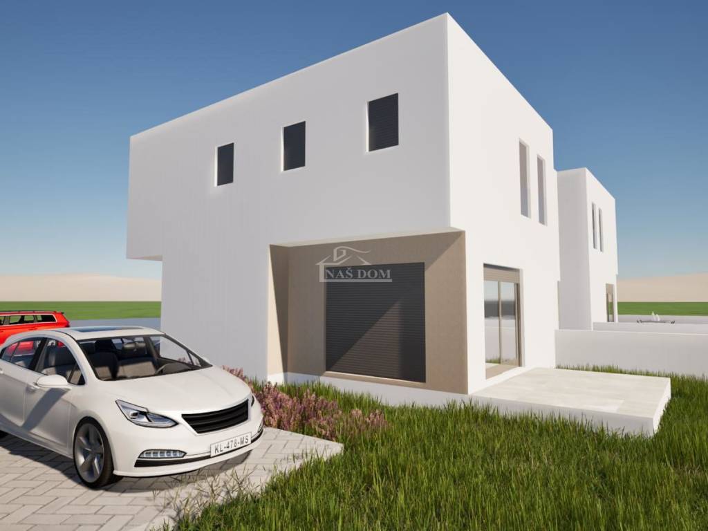 Vodice / Srima - *New construction* Terraced house with a net area of 113m2, consisting of a ground floor which includes: covered entrance, bathroom, storage room, pantry, entrance hallway, kitchen, living room with dining area, covered terrace, internal stairs to the upper floor where there are 3 bedrooms, bathroom, corridor, and laundry room. The house includes a fenced yard with an area of 87 m2 and 2 parking spaces.