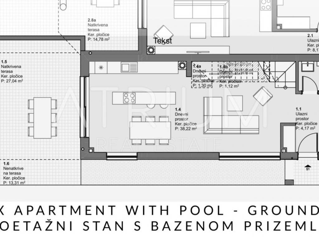 For sale: Luxurious duplex apartment with pool and garden – S1