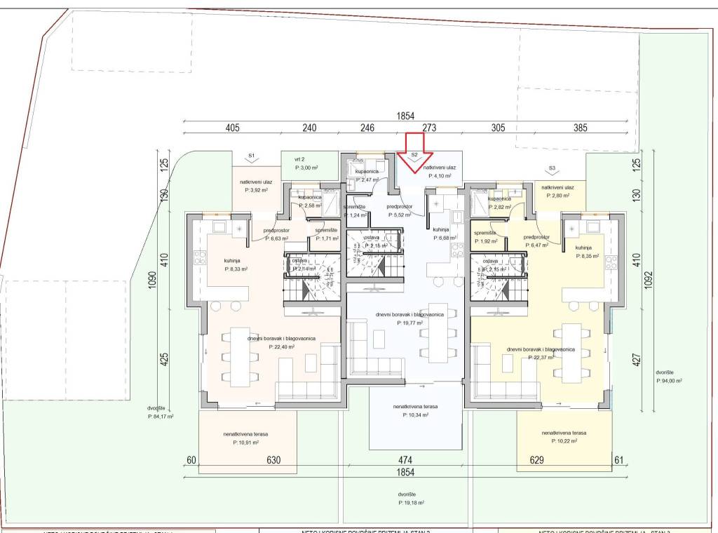 Vodice / Srima - *New construction* Terraced house with a net area of 88.27 m2, consisting of a ground floor which includes: covered entrance, bathroom, storage room, pantry, entrance hallway, kitchen, living room with dining area, covered terrace, internal stairs to the upper floor where there are 2 bedrooms, bathroom, hallway, and laundry room. The house includes a fenced yard of 20 m2 and 1 parking space.