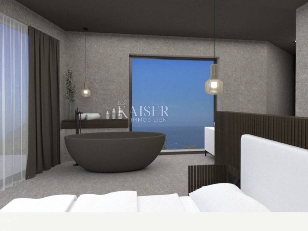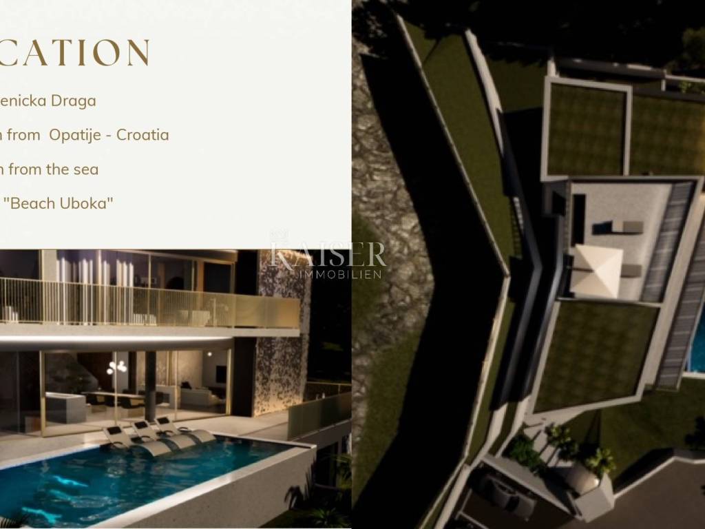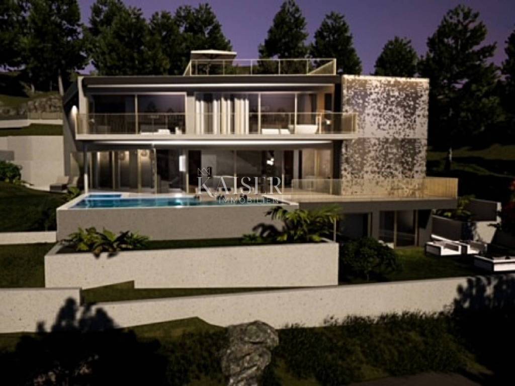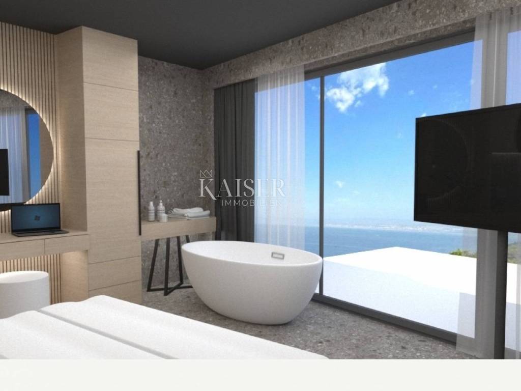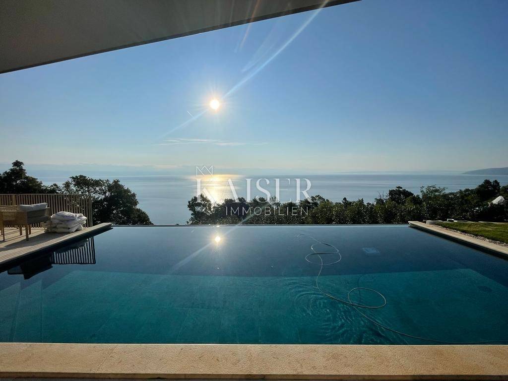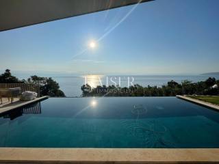 Kaiser immobilien presents you a luxurious villa with a beautiful view of the sea. The villa is only a 5-minute drive from the most beautiful beaches in Mošćenička Draga. The villa has six bedrooms with six private bathrooms. The villa offers the owners complete privacy and peace.OPATIJA - IČIĆI - POLJANE, For sale is a beautiful modern villa with an infinity pool and a panoramic view of the sea, in a beautiful and quiet location and only a 5-minute drive away from the sea and the most beautiful beaches in Mošćenička Draga. A unique modern-style property that provides its owners with complete comfort! On the ground floor there is a large spacious living room with kitchen and dining room with access to the terrace. An internal staircase leads to the 1st floor, where there are three rooms with private bathrooms. From the first floor, stairs lead to the second floor, where there are 3 more bedrooms with their own bathrooms. There is a large sunbathing area with a pool with a wonderful panoramic view of the entire Kvarner Bay in the landscaped garden.