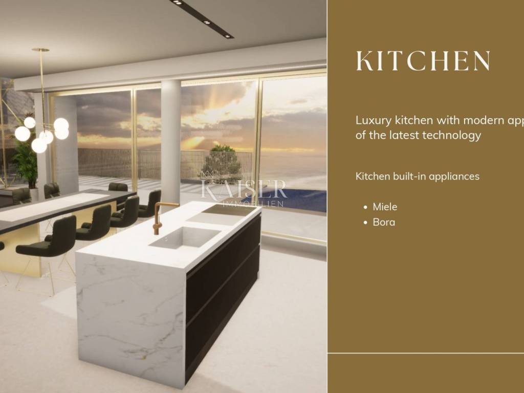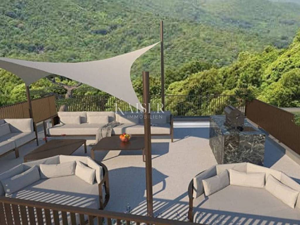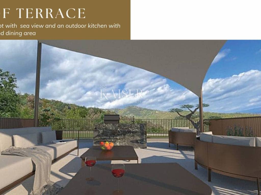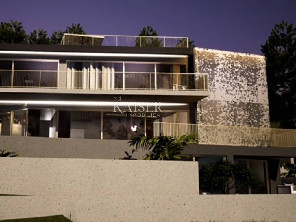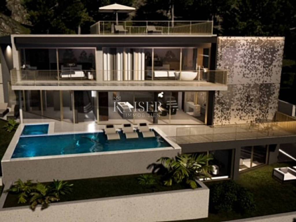 Kaiser immobilien presents you a luxurious villa with a beautiful view of the sea. The villa is only a 5-minute drive from the most beautiful beaches in Mošćenička Draga. The villa has six bedrooms with six private bathrooms. The villa offers the owners complete privacy and peace.OPATIJA - IČIĆI - POLJANE, For sale is a beautiful modern villa with an infinity pool and a panoramic view of the sea, in a beautiful and quiet location and only a 5-minute drive away from the sea and the most beautiful beaches in Mošćenička Draga. A unique modern-style property that provides its owners with complete comfort! On the ground floor there is a large spacious living room with kitchen and dining room with access to the terrace. An internal staircase leads to the 1st floor, where there are three rooms with private bathrooms. From the first floor, stairs lead to the second floor, where there are 3 more bedrooms with their own bathrooms. There is a large sunbathing area with a pool with a wonderful panoramic view of the entire Kvarner Bay in the landscaped garden.