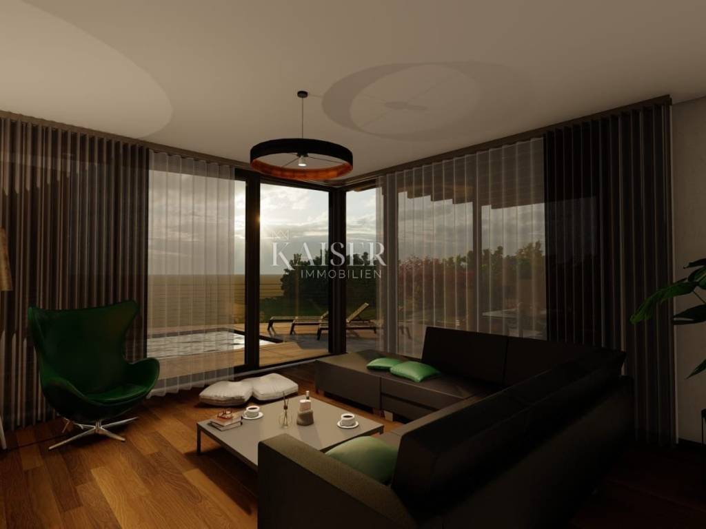 Kaiser Immobilien puts on the market a luxurious two-story apartment in an excellent location in Kostrena. On the ground floor there are two storage rooms, a spacious living room and a bathroom, on the 1st floor there is a staircase, a hallway, three bedrooms, a bathroom and a balcony. On the roof there is a terrace with a jacuzzi and a sunbathing area. In the garden of the apartment there is a private swimming pool with a sunbathing area. The apartment has two parking spaces. The nearest beach is 650 meters away and takes 10 minutes on foot. Everything you need is in the immediate vicinity, from shops, parks, promenades, elementary schools, kindergartens, public transport. For all questions, please contact your agent.