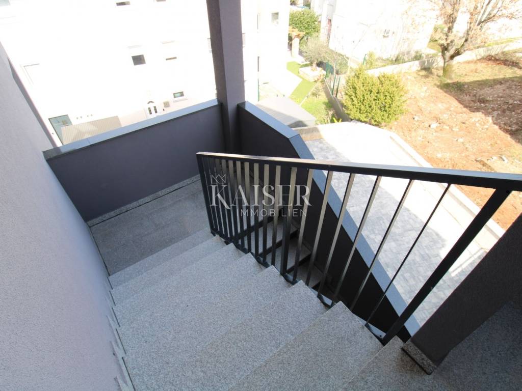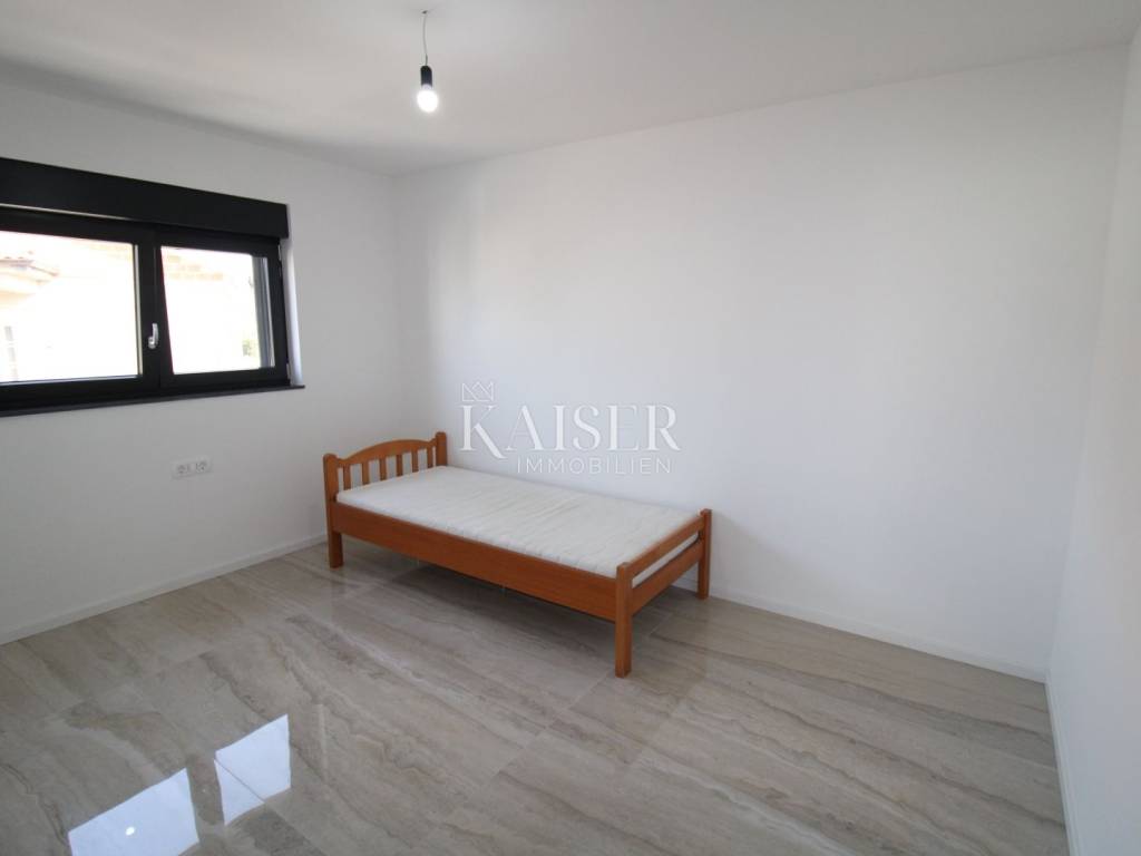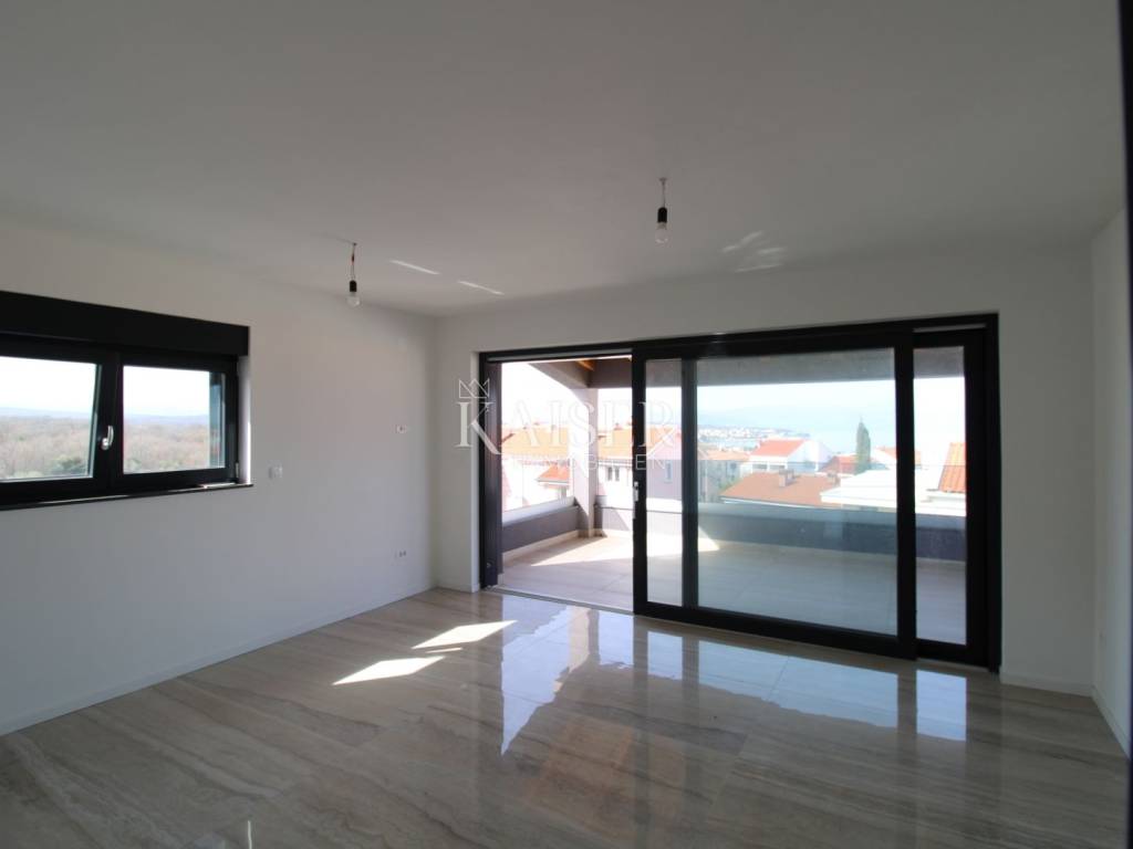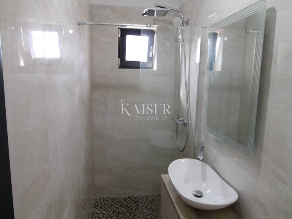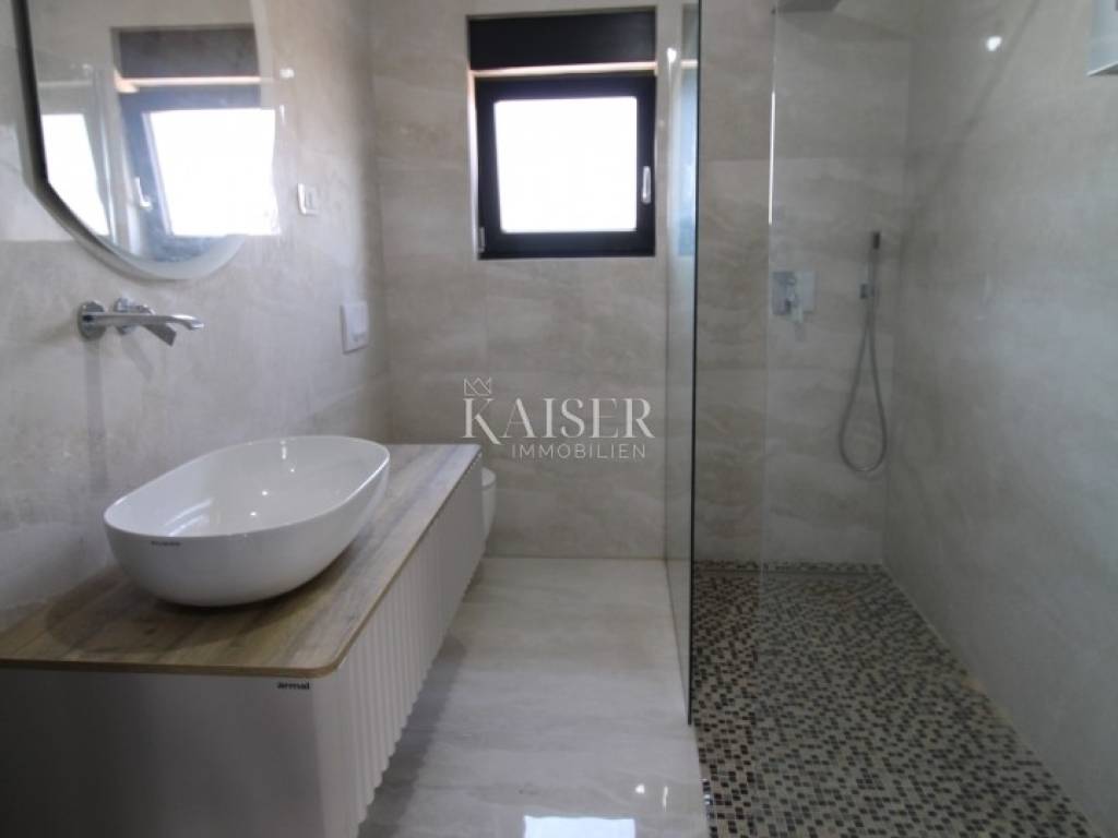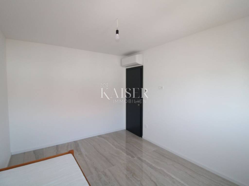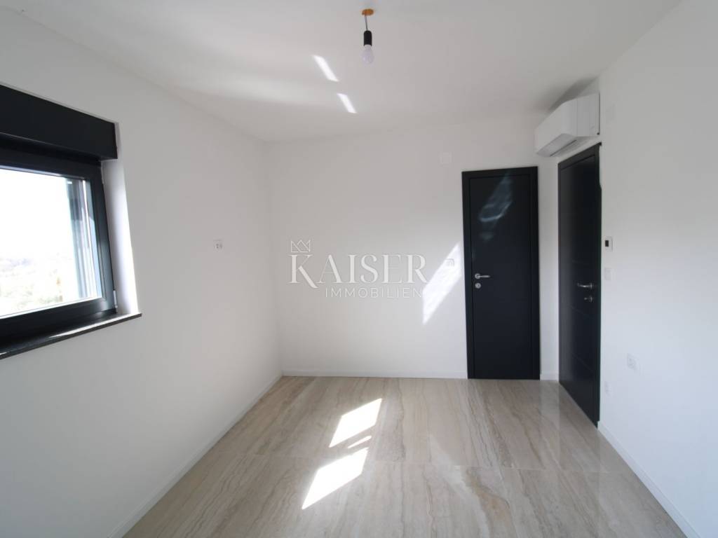 Kaiser Immobilien presents: Exclusive apartment with panoramic views of the Bay of Rijeka and the island of Cres A modern apartment for sale in Malinska on the island of Krk, located in a quiet area, surrounded by smaller buildings, houses and forests, only 700 meters from the sea, a few minutes' walk. This elegant property has an area of 75 m². Located on the first floor of a modern apartment building on two floors, each floor of which has one apartment. Its carefully designed floor plan allows for maximum use of space, while large glass surfaces let in plenty of natural light, creating an airy and pleasant ambiance. The biggest advantage of this home is a large terrace with a glass fence from which you can enjoy a view of the forest, the sea and the island of Cres, making it a real haven for those seeking peace and beauty every day. Upon entering the apartment, you pass through a hallway, which leads to different parts of this sophisticated home. The part of the apartment reserved for relaxation includes two spacious bedrooms, one of which has its own private bathroom, while the second bathroom is located in the immediate vicinity and is easily accessible to everyone. The social part of the home consists of a spacious living room with an integrated dining room and kitchen, which exudes spaciousness and elegance. The floors are covered with large, shiny Italian ceramic tiles, which give the space a sophisticated look. A special impression is made by the large balcony wall, which opens completely and connects the interior with a spacious terrace - an ideal place to enjoy morning coffee, evening gatherings or simply relax with a stunning panoramic view. Underfloor heating is installed throughout the entire apartment, ensuring pleasant warmth during the colder months, while a modern air conditioning system with devices in each room is responsible for optimal climate in all seasons. The windows are made of top-quality materials and have remote-controlled roller shutters, while built-in mosquito nets ensure protection from insects with an unobstructed flow of fresh air. The apartment also has a prepared opening for a chimney, providing the possibility of installing a fireplace, which will further contribute to the warm and cozy atmosphere. Each apartment has a parking space, as well as additional parking for guests. Apartment contents and room sizes: Hallway – 4.64 m² Kitchen, dining room and living room – 19.04 m² Bathroom 1 – 3.19 m² Bedroom 1 – 12.74 m² (with private bathroom) Bedroom 2 – 12.26 m² Bathroom 2 – 3.19 m² Terrace – 14.34 m² (calculated 7.17 m²) Total net area of the apartment: 68.23 m² Staircase: 2.04 m² Total net area of the 2nd floor: 70.27 m² Gross building area (GBP): 74.75 m² This apartment offers everything you need for a modern, luxurious and comfortable life – from top-quality materials and smart technological solutions to a spectacular view that will take your breath away. Malinska is the pearl of the island of Krk, known for its crystal clear sea, coastal promenades and Mediterranean atmosphere. Here you can enjoy sandy and pebble beaches, excellent gastronomic offer and numerous recreational facilities. All important facilities such as shops, restaurants and beaches are located in the immediate vicinity. The excellent connection of the island of Krk with the mainland by bridge, safety and proximity to the town itself make this apartment ideal for a family home or a tourist investment. Zagreb: approx. 160 km (2 hours drive) Rijeka: approx. 50 km (1 hour drive) Split: approx. 290 km (3 hours drive) Osijek: approx. 380 km (4-5 hours drive) Pula: approx. 100 km (1.5 hours drive) Zadar: approx. 190 km (2.5 hours drive): Trieste (Italy): approx. 150 km (2 hours drive) Vienna (Austria): approx. 460 km (6 hours drive) Ljubljana (Slovenia): approx. 170 km (2 hours drive) Munich (Germany): approx. 500 km (6-7 hours drive) Venice (Italy): approx. 220 km (3 hours drive) For more information and a viewing, contact us today. Tel.: 00385992510230 Email: marijana.papic@kaiser-immobilien.hr