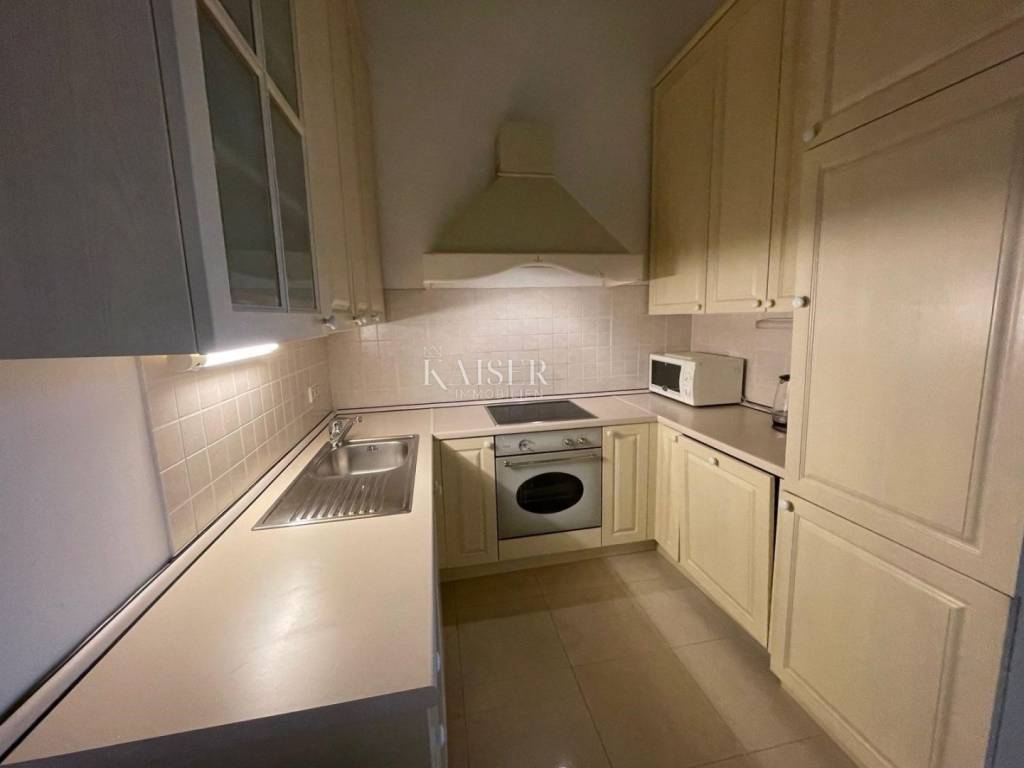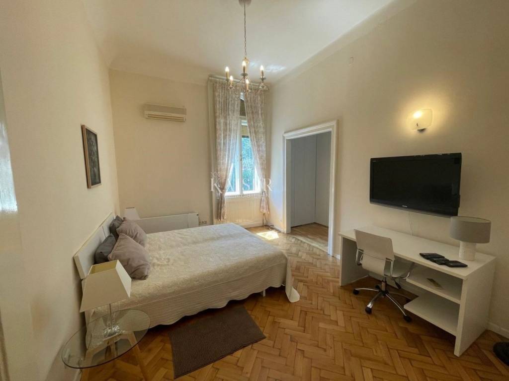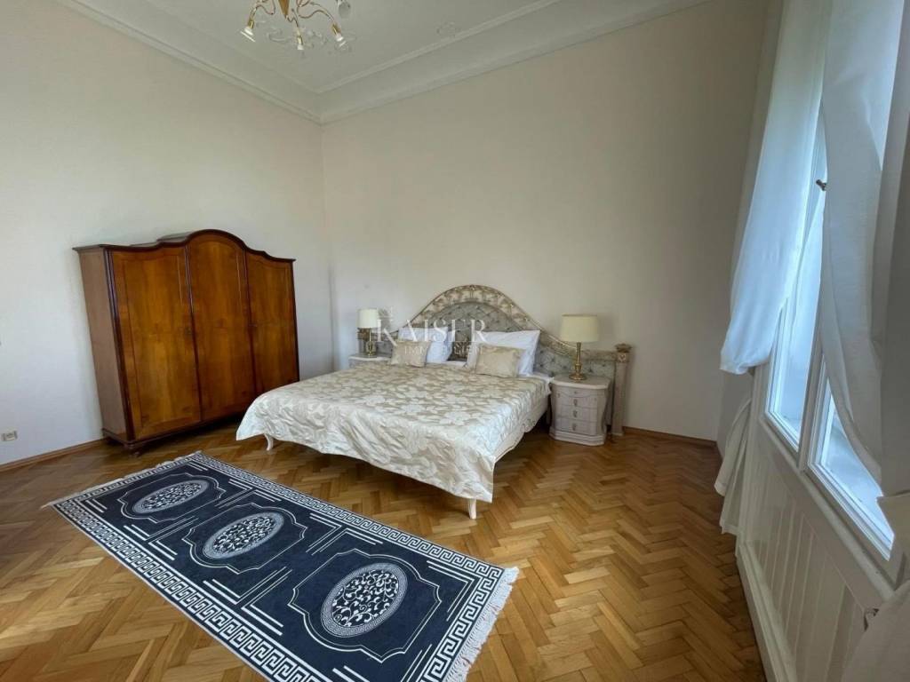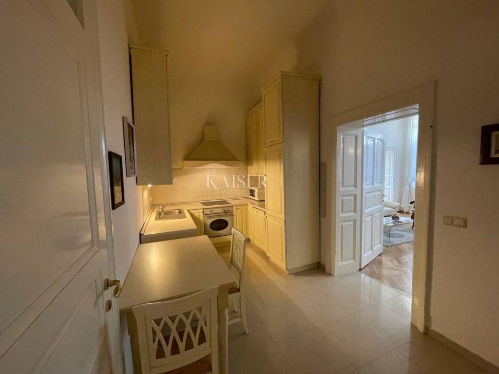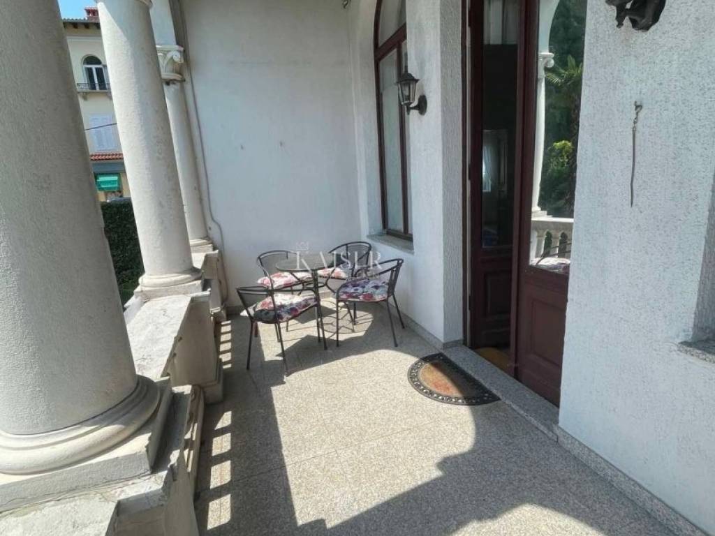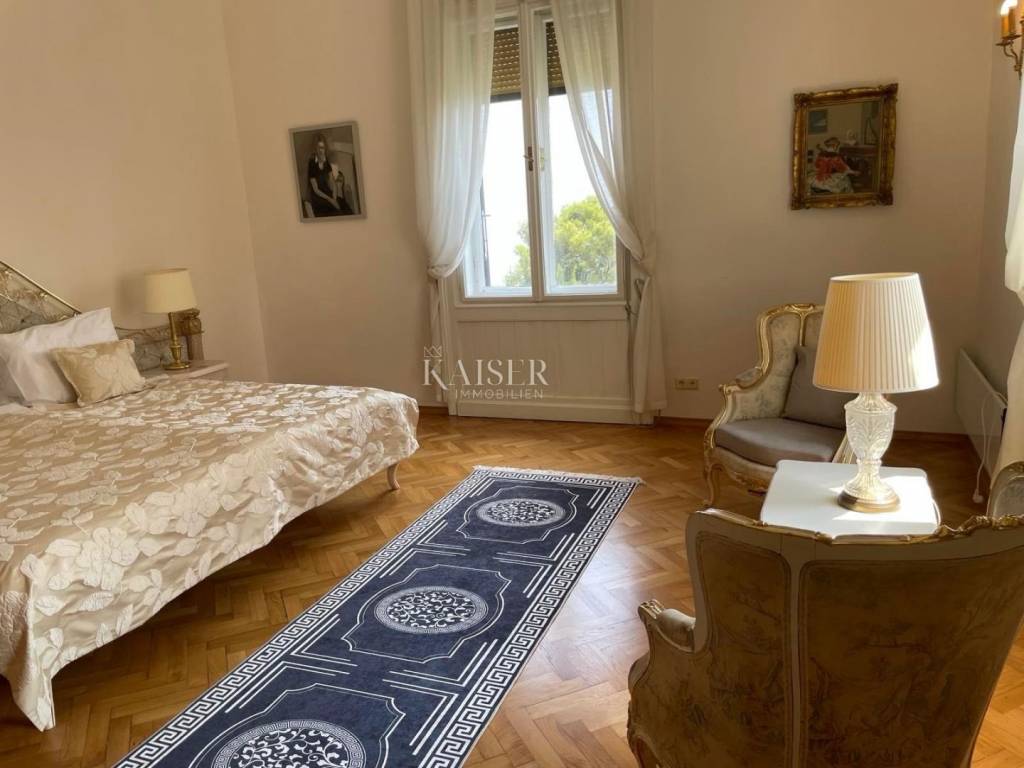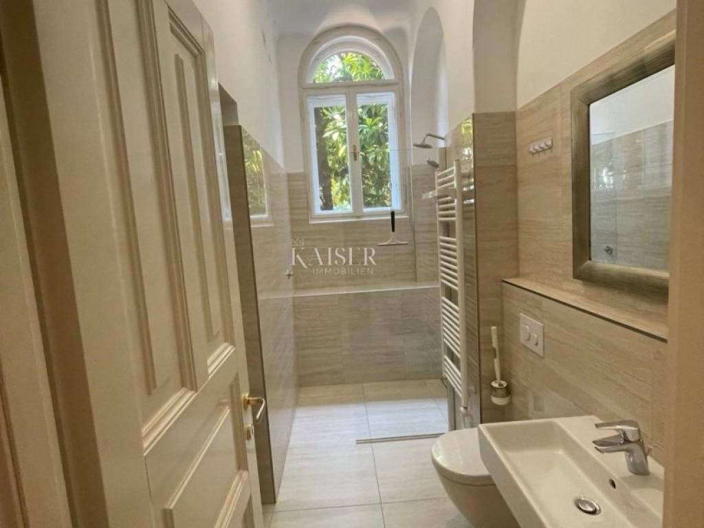 Kaiser Immobilien offers this magnificent manor apartment for rent. This beautiful property is located on the first floor of a historic villa, first row to the sea. It is located in an exceptional location with direct private access to the beach and the Lungomare promenade. The apartment has been thoroughly adapted and fully furnished with high-quality furniture and equipment, as well as burglar-proof doors. The total area of 117 m2 includes two bedrooms, one of which has its own bathroom with a shower, a spacious living room with a dining room and a balcony with a beautiful view of the sea, a fully equipped kitchen and a hallway. Heating and cooling is provided by air conditioners and floor heating in the bathrooms. This villa is located in a beautifully landscaped Mediterranean garden, which is divided among each co-owner, so that each apartment has its own private part of the garden, which ensures peace and privacy in the middle of the common area. An additional advantage is that it is within walking distance of the nearest restaurants, shops and other amenities necessary for a comfortable life on the Opatija Riviera. For additional information and a tour, contact me at phone number 00385 976839504, or at the email address: ilijana@kaiser-immobilien.hr. Agency commission is 1 rent + VAT