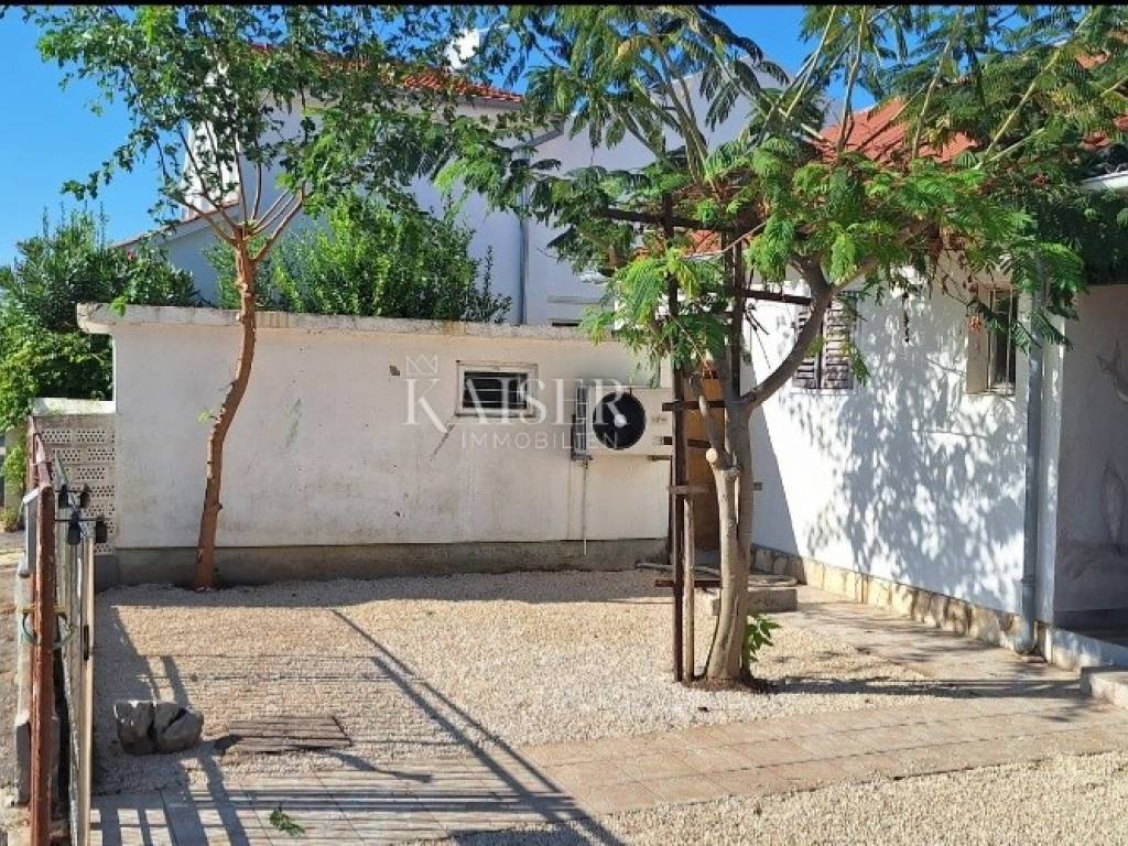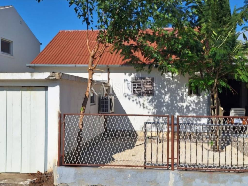 Kaiser Immobilien puts on the market: House in Nin, 2nd row from the sea For sale is a house in Nin, located in a quiet area, only 2nd row from the beach and the sea. The house needs adaptation, which makes it an ideal opportunity for those who want to decorate the space according to their own wishes. Basic characteristics: - Land area: 229 m² - Living space: 81 m² (includes covered terrace and garage) - Additional terrace: On the roof of the garage with a view of the sea - Connections: Water supply and electricity are connected, and sewage is currently being implemented - Documentation: Building and use permit secured - Fenced area: The entire plot is fenced This house offers an excellent opportunity for a quiet life near the sea or as an investment for tourist rental, with the potential for remodeling. For more information and price, contact us at 00385992510230 or at marijana.papic@kaiser-immobilien.hr[contact number or email].