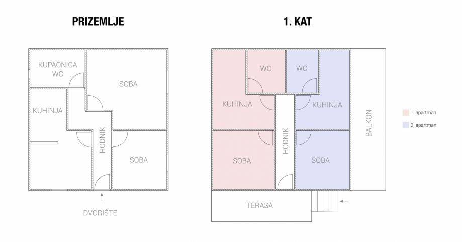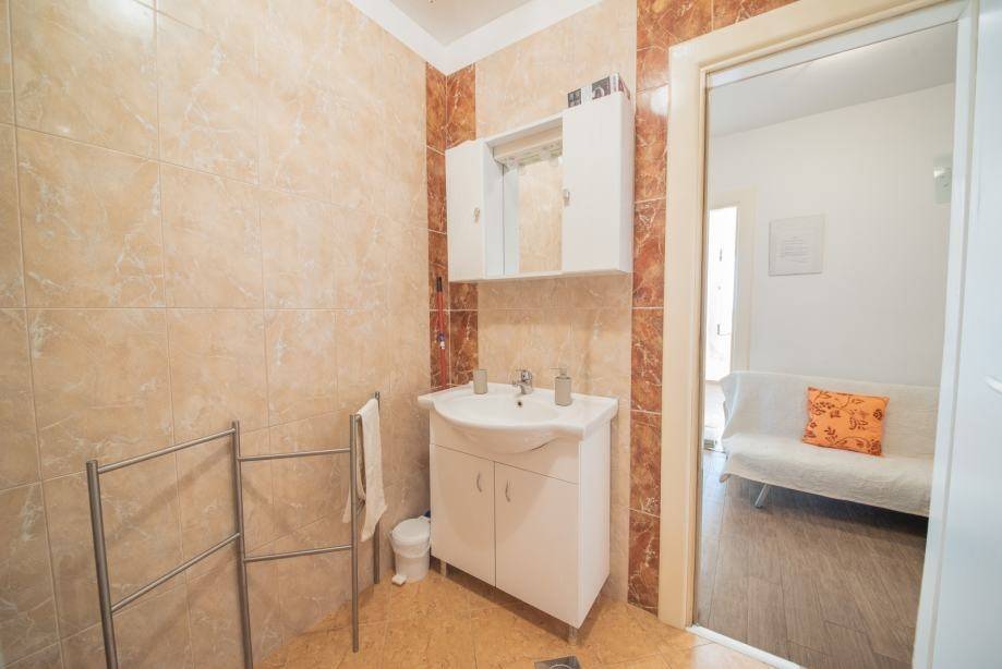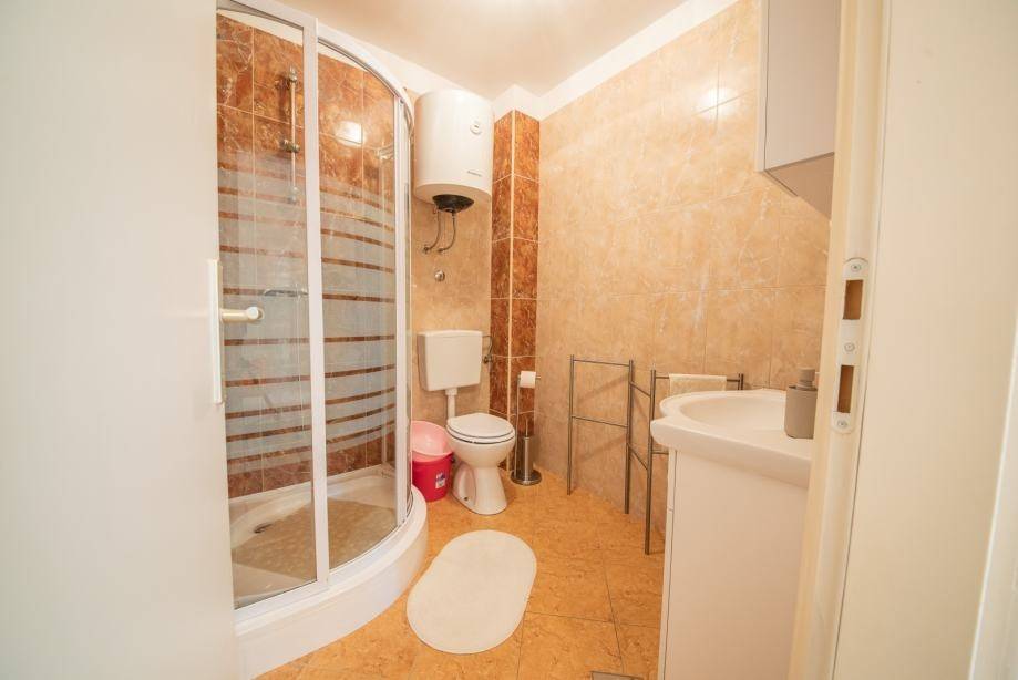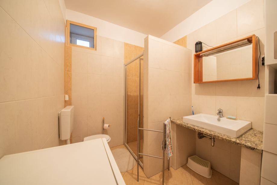 The house is located in an exceptional position, literally right by the sea. It consists of a yard with parking for 3 vehicles, 3 separate residential units on two floors (ground floor and 1st floor). The ground floor is used as a private cottage, while on the first floor there are 2 beautifully decorated apartments that are used for daily rent. Within 30 meters there are: shops, post office, clinic, butcher, market, pharmacy, restaurants, cafes, etc. The property is a semi-detached house and is located 13 km from the branch of the Zagreb-Zadar highway.