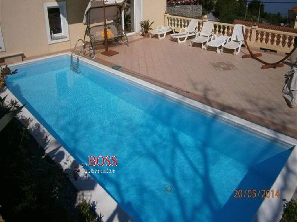 prodaje se villa na odličnoj lokaciji s puno zelenila i predivnim pogledom na more. u prizemlju je poslovni prostor površine 100m2, prvi kat je površine 190m2, a 2.kat ima 180m2. okućnica 1700m2. bazen. u kući se nalazi i sauna. uredna vlasnička dokumentacija. boss, kontakt: 091/627-7999