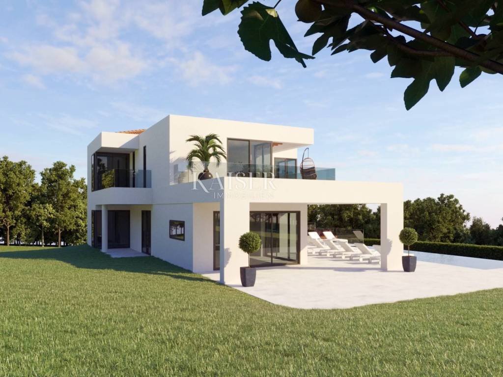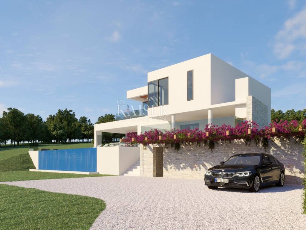 Kaiser Immobilien offers a villa under construction on a large plot of about 10,000 m2. The villa is currently under construction and will be sold in the unfurnished stage. It will have two floors, on the first floor there will be three bedrooms with three bathrooms, on the ground floor there will be a large kitchen, living room and dining room, and one study that can be converted into an additional bedroom if needed. The villa will have a net area of 280 m2 and a large garden to ensure complete privacy and peace. The villa is being built in a quiet village near Vižinada, only 15 km from Poreč. As a tourist town, Poreč offers all the necessary facilities you might need, from shops and restaurants to a bank, post office and pharmacy.
