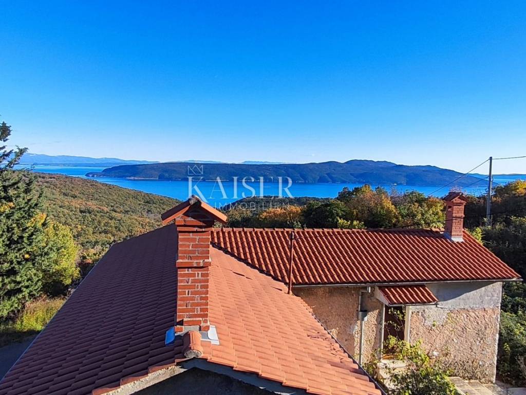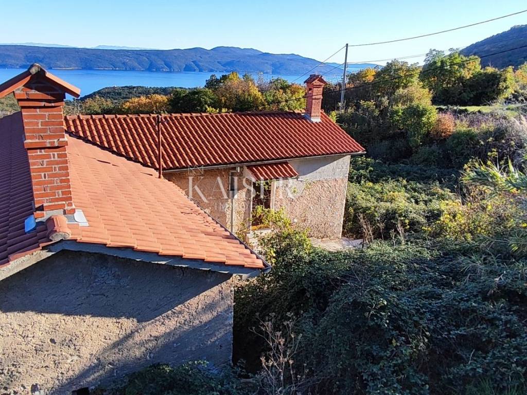 Kaiser Immobilien presents a house with a spacious garden for renovation in the area of Brseč, Mošćenička Draga. The total area of the house is 180 m2. On the ground floor there is a one-room apartment with a bathroom and a separate tavern. The first floor is intended as a large three-room apartment with a separate exit to the yard, more precisely the terrace. Access is via an asphalted road to the property itself, the garden offers enough space for several cars. The first floor of the house has been renovated, but adaptations are needed, while the ground floor must be completely adapted. The yard consists of 900 m2 and can be used perfectly for the installation of a swimming pool and other facilities. It is currently not cleaned and was once a small vineyard. Due to the cascading nature of the area, the property offers beautiful views of the sea, and the construction of the other properties will not affect the view. The property is a great opportunity due to its unique location and beautiful view of the sea and the island of Cres. The house is located in a quiet village, which is reached by a private road, surrounded by autochthonous Istrian houses and beautiful nature. Just a few minutes' drive away is the medieval center of Brseč with the necessary facilities such as shops, ATMs, cafes and restaurants. Brseč offers one of the most beautiful beaches in Kvarner, Klančac beach. It also offers various caves, hidden coves and secluded beaches. The untouched nature of this area attracts many visitors. The golf driving range is open throughout the year and is the only one in Croatia with Toptracer equipment. Mount Sisol is located in the back of the property and is one of the more famous hiking destinations. The beautiful nature of this region and the excellent location help this region in its growth and development every day, due to the late development of the region, the luxury of newly built real estate attracts more and more investors as well as visitors. For more information, contact an agent.