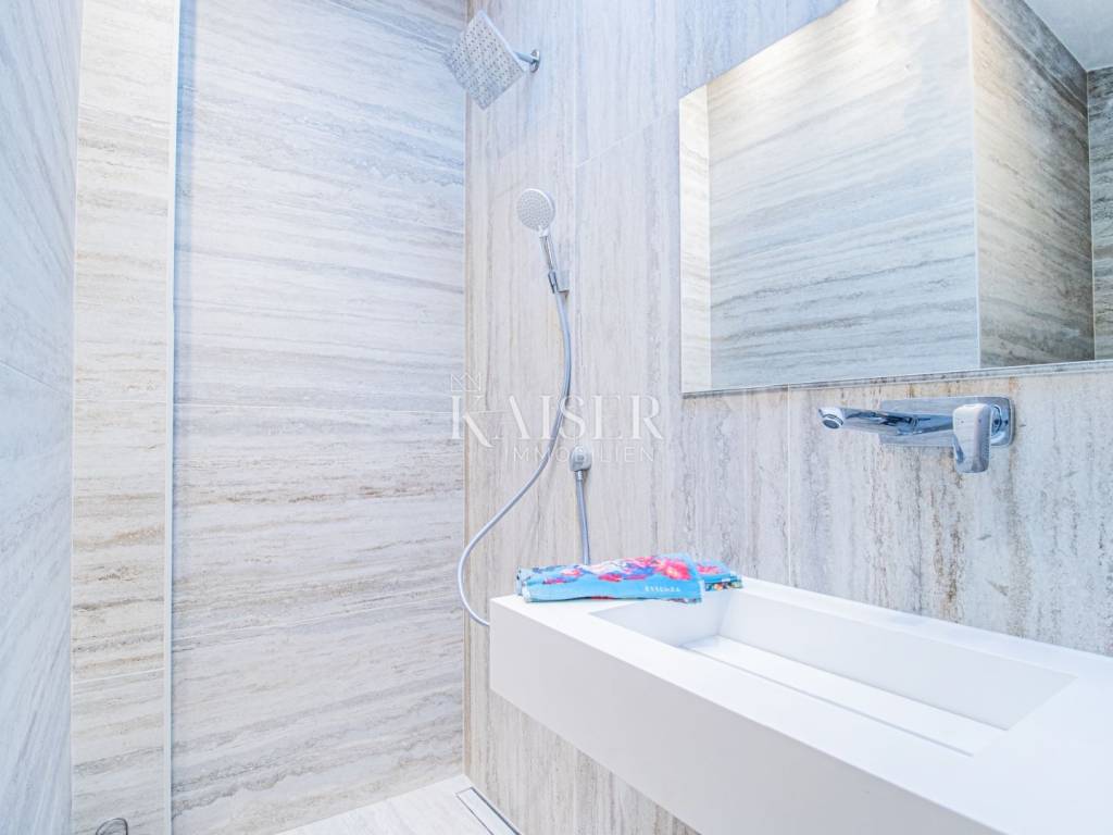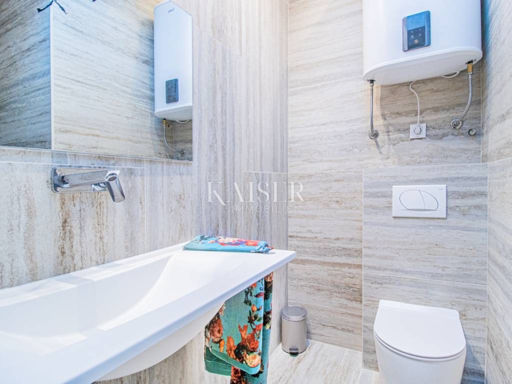 Three-room apartment for sale in a new building in the center of Rijeka. It consists of a living room with a kitchen and dining room, bedrooms and a bathroom. The living room opens onto a spacious terrace, 20m2 in size, decorated with Traventino stone and a baroque-style wrought iron fence. The heating is underfloor, combined with air conditioners. The apartment has its own parking space. The location is excellent, close to all facilities (city lines, ZTC, KBC, medical, economic and maritime faculty, etc.) The new building is located east of the center of Rijeka and is known for its diverse community and lively atmosphere. Life in this neighborhood is very popular: you are not far from the center, yet far from the bustle, noise and stress. Also, there are numerous cultural, entertainment, sports and recreational facilities here, which makes it an ideal place for social gatherings, entertainment and sports events. The location of the property is ideal for use as an investment project. The location proved to be interesting both for tourists, due to the proximity of Opatija and Istria, and for business people visiting Rijeka, for example, due to the proximity of the port of Rijeka. The new connection to the highway means that you can reach the highway in 2 minutes, despite the almost central location in the center of the city of Rijeka.