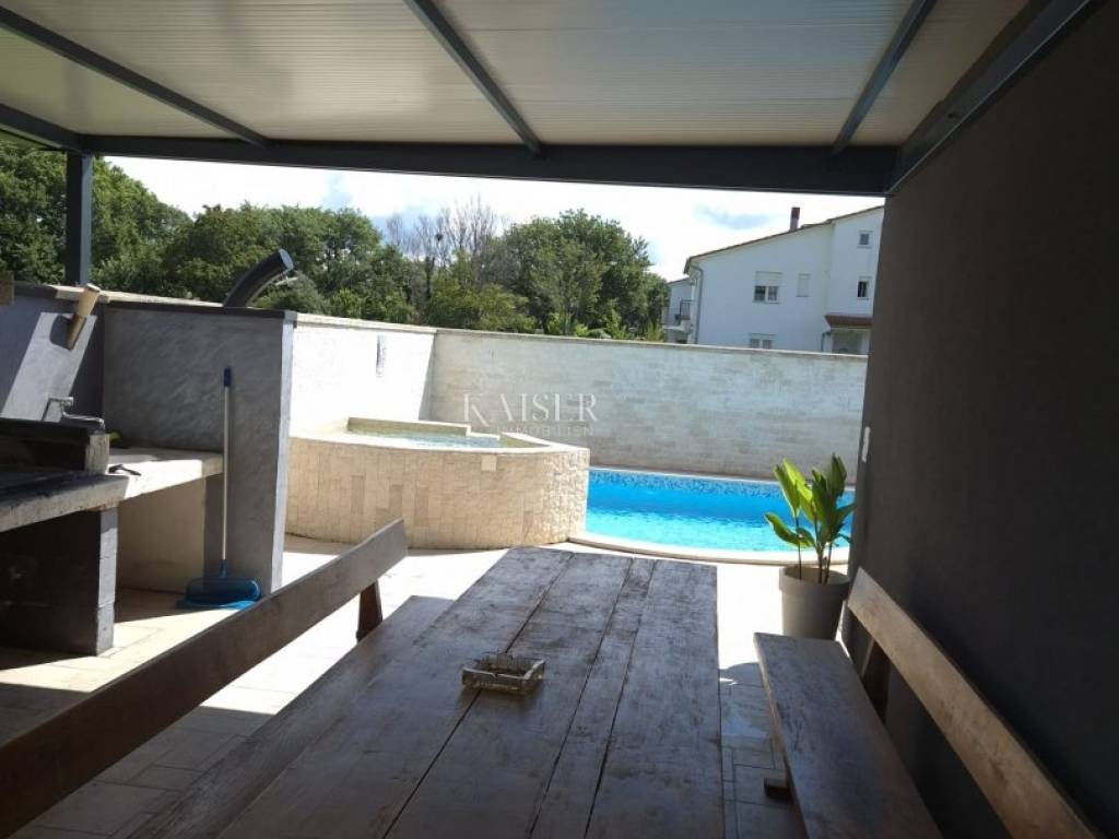 Kaiser Immobilien offers for sale two properties near the center of Pula, only 900 m from the sea. The properties are located in a very attractive location, popular both for the local population and for foreigners, surrounded by villas and apartments that are very successfully rented out during the summer season. It is about two villas that the owner would like to sell together, and together they make up the price of 1,500,000.00 Euros. Each villa has its own entrance, its own swimming pool, wellness area, and separate electricity and water meters, both per villa and per floor. Villa number 1 is larger and has a gross area of 400 m2. It consists of the ground floor, first and second floors. On the ground floor of the villa there is a wellness area with a jacuzzi, sauna and shower, three bedrooms, two bathrooms, a toilet, an area for table tennis, billiards, and table football. On the first floor there are two more bedrooms, two bathrooms, two terraces, a kitchen and a dining room with a table for 14 people. On the second floor there is a living room, a terrace, two bedrooms and two bathrooms. The villa has its own swimming pool in the yard, lawn irrigation, water heating via solar panels, 7 parking spaces, and a covered terrace with barbecue. The property is ideal for living or as a tourist investment for the purpose of renting, given that the owners rented it very well and there is a record of this. Distance of the property to the city: Pula - Pula Airport, 8 km Pula - Ljubljana, 187 km Pula - Vienna, 574 km Pula - Prague, 897 km Pula - Munich 604 km If you are planning to start your new life in Istria or are looking for an ideal investment property contact us with confidence at phone number 00385 923782803, or at the email address: ivana@kaiser-immobilien.hr. Agency commission is 3% + VAT.