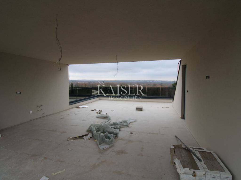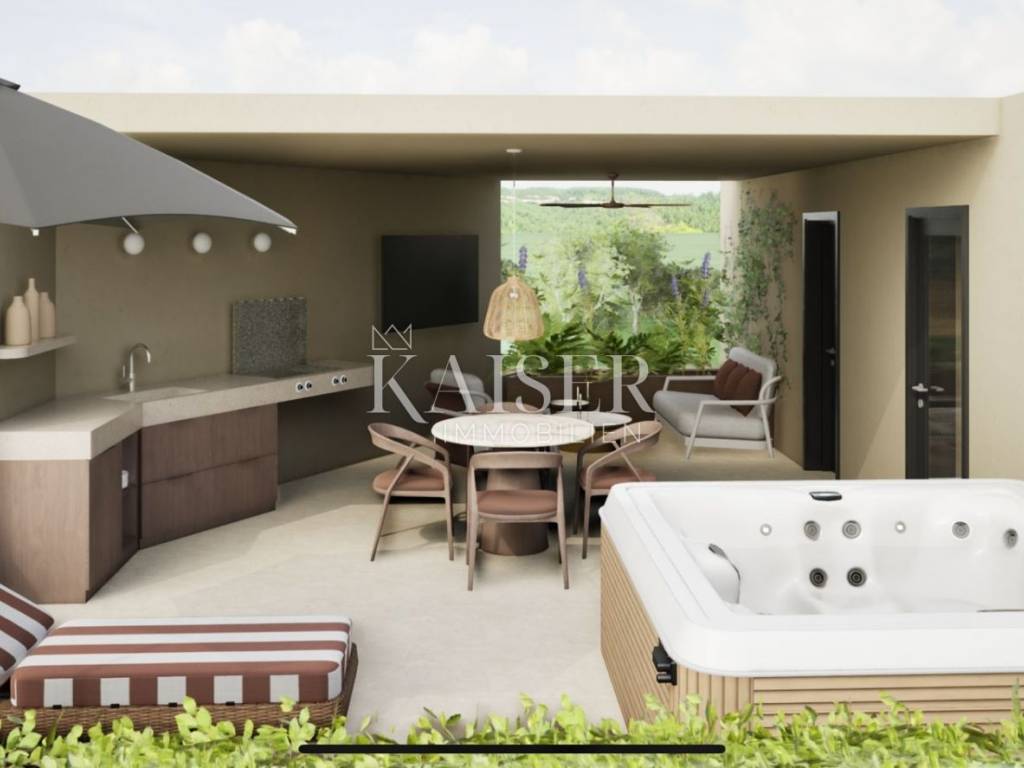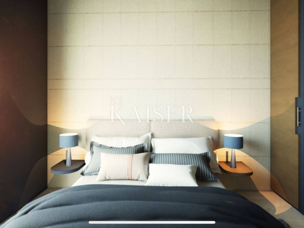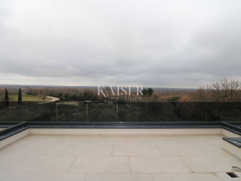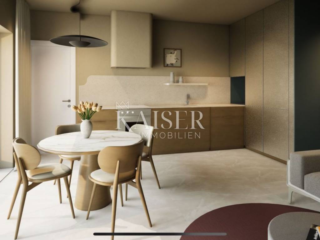 Kaiser Immobilien offers for sale a beautiful and modern apartment in a new building with one bedroom and a roof terrace. The apartment is located near the town of Poreč, only 2 km from the sea and the first beaches. The location of this apartment is exceptional because it is located on the edge of a green belt in front of which there is no more construction, and it offers you a beautiful view of nature and olive groves. The other side of the apartment is surrounded by forests and nature, providing you with a real oasis of peace and relaxation. The apartment is located on the first floor of the building. The building has a smaller capacity and there are no floors above it. The apartment consists of 1 bedroom, 1 bathroom, kitchen and living room and dining room. The apartment has its own balcony from which it offers a beautiful view of nature and olive groves. The apartment also has a roof terrace in its content, which gives it a special feature. The terrace on the roof is very attractive, it is larger in size and has a covered and uncovered part of approximately 50 m2. There is also an additional roof toilet. Precisely because of its size and unique appearance, the roof terrace offers more possibilities for economical use of that space, so it gives you the idea that you can place a jacuzzi, a barbecue, a set of tables and chairs, etc... The view from the roof terrace is exceptional and offers you a wonderful view of the sea and nature around you. The apartment is sold with decorated floors and a bathroom, with quality carpentry and a burglar-proof entrance door. Distance of the property to the city: Poreč - Pula Airport, 45 km Poreč - Ljubljana, 162 km Poreč - Vienna, 544 km Poreč - Prague, 868 km Poreč - Munich, 565 km If you are looking for your perfect property, please contact us with confidence on the phone number 00385 923782803, or on the email address: ivana@kaiser-immobilien.hr. The agency commission is 3% + VAT, and is charged for the first legal act.