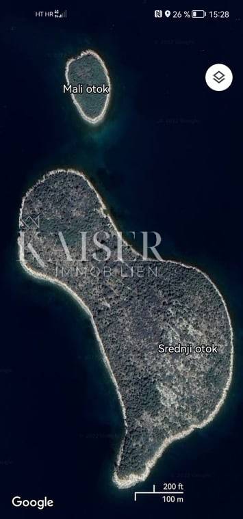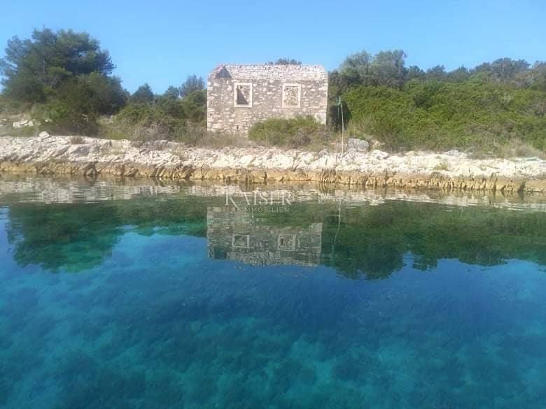 Kaiser Immobilien offers a unique property, a beautiful island in the Zadar archipelago with an area of 128,106 m2. In a small bay of the island, there is an old stone house from the 19th century, P+1, 60 m2. On it you can also find an old olive grove surrounded by dry stone walls with a total of 15 olive trees. The island is rich in wild vegetation, firs, spruces and other plants, and besides the wonderful Mediterranean flora, you can meet rabbits and pheasants. It is approximately 500m away from the first inhabited island, which you can reach in just half an hour by boat. Construction is allowed on the island, and location information is available. This is a unique opportunity for investors who are looking for peace and the beauty of nature, having the whole island to yourself must be a real peace of mind.