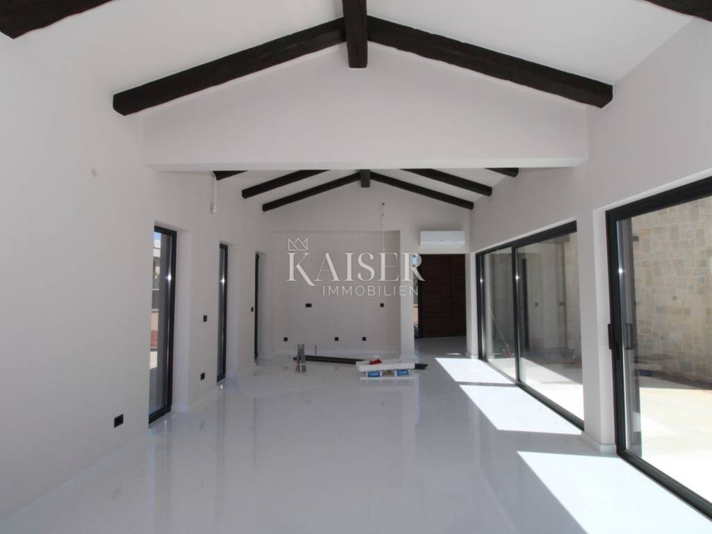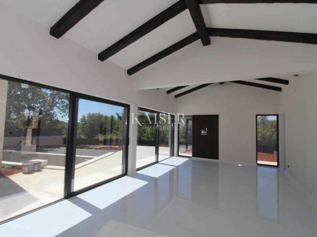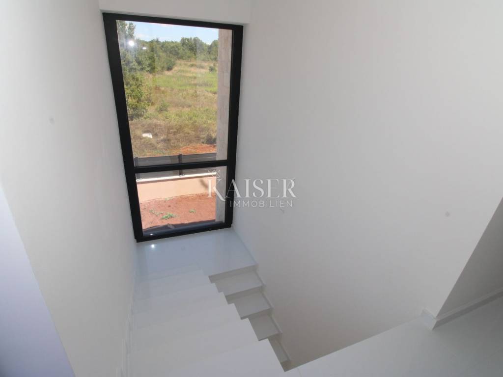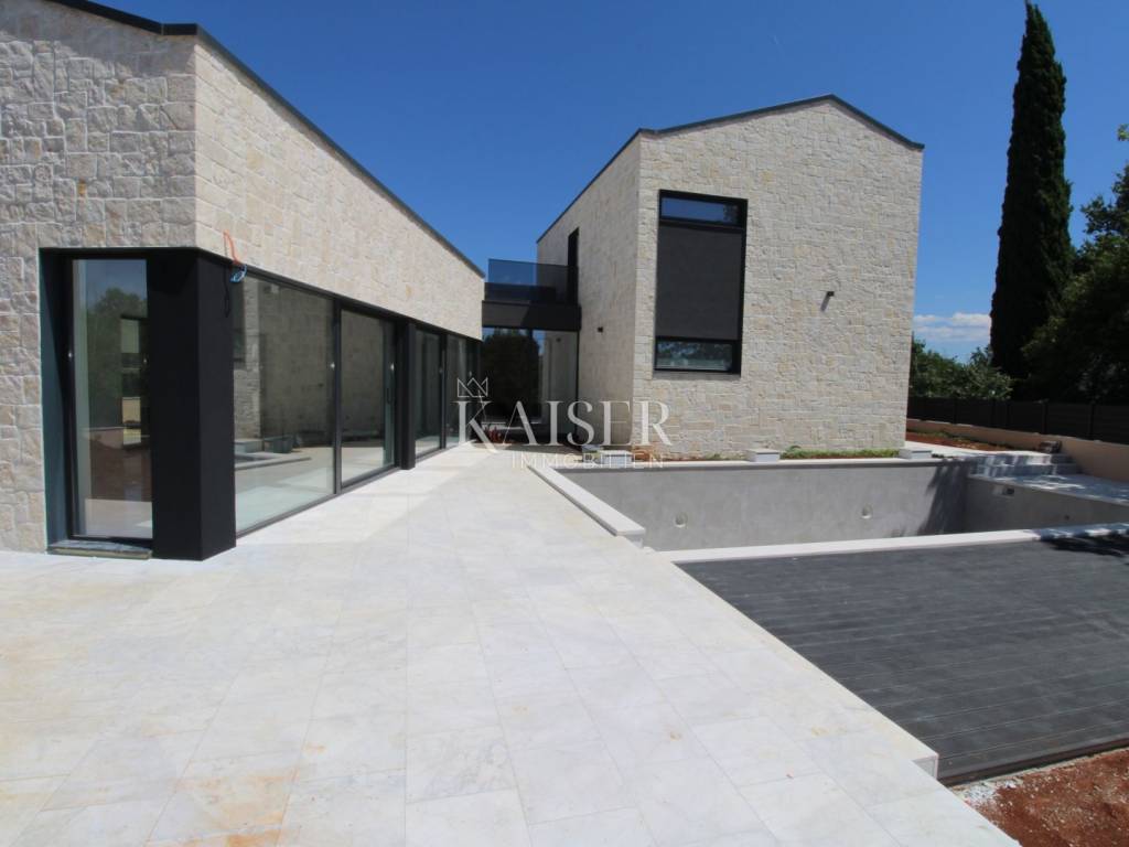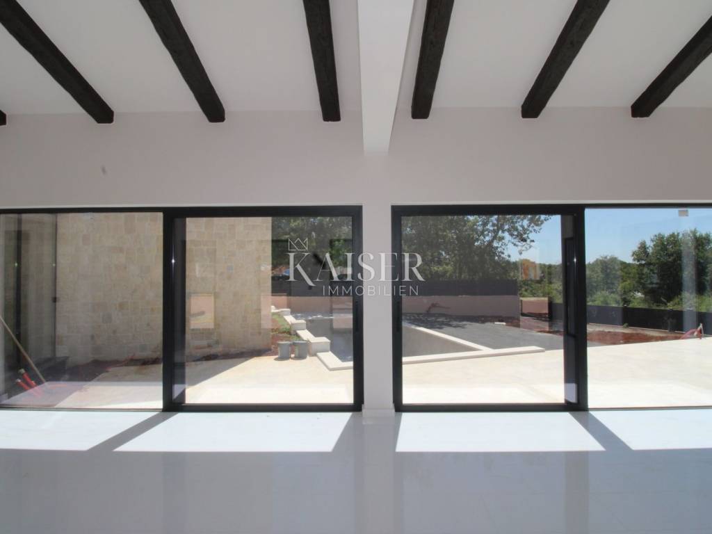 Poreč is one of the most famous and most visited cities on the western coast of Istria, located along the crystal clear Adriatic Sea. The city is characterized by a rich history, whose roots go back to Roman times, and its most famous cultural treasure is the Euphrasian Basilica, a monument under UNESCO protection. In addition to its historical heritage, Poreč offers top-notch tourist content, beautiful beaches, seaside promenades, bicycle paths and a wide selection of restaurants, cafes and sports activities. Thanks to its excellent infrastructure and development, Poreč is an ideal place for both vacation and year-round living. Kaiser Immobilien presents you with a luxurious villa of 210 m² near Poreč - a perfect combination of elegance, nature and superior comfort. Just four kilometers from the old town and pedestrian zone of Poreč, in a quiet village, this exclusive villa is located, whose architecture and surroundings are reminiscent of the Tuscan landscape. The neighborhood is home to exclusively luxurious stone villas with spacious courtyards and swimming pools, while on one side of the street the view opens onto a protected green belt and forest, further emphasizing privacy and peace. The villa is spread over two floors and has a total net area of 210 m². It consists of four elegantly designed bedrooms, each with its own spacious bathroom. Two rooms are located on the ground floor and two on the first floor, each providing direct access to a bathroom with shower and toilet, which allows the property to be categorized as a five-star property - ideal for tourist rentals. The rooms on the ground floor have direct access to the terraces by the pool, with a designated area for sun loungers and parasols of 25.50 m2. The entrance to the villa leads through an impressive 15 m² lobby, which serves as a wardrobe and storage space. To the left of the lobby is the night area, while to the right is the entrance to the luxurious living room of approximately 100 m² with an integrated kitchen and fireplace. The living area stands out with its exceptional ceiling height, which reaches up to 5 meters, creating a feeling of airiness and luxury. Through an eight-meter wide lift-and-slide glass wall, you can access the courtyard and the 9 x 4.5 m swimming pool, surrounded by natural stone. Next to the pool, there is a covered summer kitchen, shower and barbecue area - ideal for summer evenings and gatherings with a total area of 46 m2. The ground floor also houses an additional, large bathroom for daily needs and a technical room with a storage room. An internal staircase leads to the first floor where, in addition to two bedrooms, there is also an exit to the roof terrace with a jacuzzi and a stunning view of nature. The terrace extends above the entrance hall, and the entire upper floor ensures maximum comfort and privacy. The villa is located on a plot of 800 m², completely fenced with a massive concrete fence lined with natural stone. Entrance to the plot is provided through a wide electric gate, and the parking area is paved with Italian stone cobblestone and has space for up to six vehicles. The facade of the villa is made of natural stone with 15 cm thick thermal insulation and a 50-year warranty. The roof is designed as a sink, covered with specially ordered white tiles from Italy. The interior floors are a combination of natural stone and top-quality ceramics, while the entire facility is equipped with underfloor heating and a wall cooling system in separate installations. All joinery is aluminum, and the entrance door is a combination of aluminum and solid wood, measuring as much as 3 x 3 meters. Bathroom equipment includes renowned brands Laufen and Hansgrohe, while all sanitary elements have been carefully selected to meet the highest aesthetic and functional standards. The villa is equipped with an alarm system, video surveillance and a video intercom. As part of the horticultural landscaping, palm trees, olive trees, thuja and decorative flowers are planned to be planted. The property is being sold unfurnished, giving the new owner the freedom to design the interior according to their own wishes and needs. There are only three villas in the surrounding area, and the entire settlement is characterized by complete silence, intimacy and natural harmony - ideal for luxury living or a tourist investment. Proximity to amenities: Poreč, center - 4 km Restaurant - 80 m Beach - 4 km Cafe - 2 km Shop - 3.5 km Bakery - 2 km Pharmacy - 4 km Bus station - 2 km Sights - 2 km Distance to larger cities: Poreč- Ljubljana: 146 km Poreč- Vienna: 527 km Poreč- Budapest: 607 km Poreč- Prague: 853 km Poreč- Munich: 549 km Poreč- Zagreb: 268 km The agency commission for the buyer is 3% + VAT and is paid in the case of purchasing a property, upon conclusion of the first legal act. ID-CODE: 127-129 If you would like to visit the property in person, please contact: Jennifer Hofmann E-mail: jennifer@kaiser-immobilien.hr Tel: +385-91-515-0887 http://kaiser-immobilien.hr/
