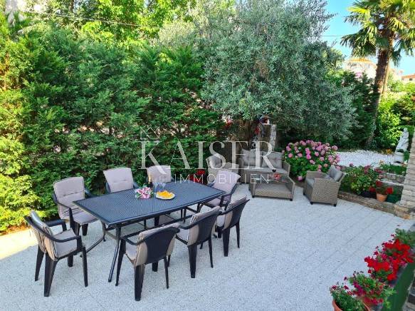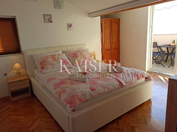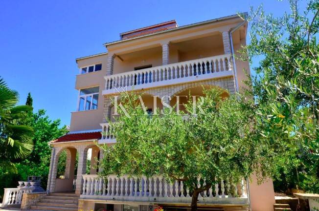 Kaiser Immobilien is putting on the market an apartment house with 6 apartments with a total area of 500 m2. The house consists of a basement, ground floor, 1st floor, 2nd floor and attic, and is located in the immediate vicinity of the sea, located only 300 m from beautiful beaches. There is one apartment on each floor, and there is an additional studio apartment of 50 m2 in the yard. The apartments on the ground floor, on the first and second floor each have two bedrooms and two bathrooms, a living room with a kitchen and a dining room, and an exit to the terrace. Apartment in attic and studio consist of one room, one bathroom, living room and kitchen. The top two floors offer a wonderful view of the sea. In the basement there is a boiler room and a solar heating system, as well as a large room with a laundry room. There is also a garden fireplace on the garden area of 560 m2 decorated in Mediterranean style, which all together makes an ideal space for relaxation and enjoyment with friends. The house was built in 1992, properly maintained and completely renovated in 2017. The renovation includes a new facade, new installations and the interior. Beach: 300 m Shop: 100 m Airport: 15 km Restaurants: 2 km