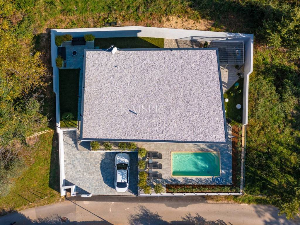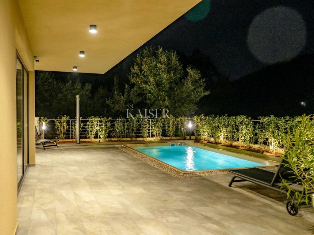 The villa is surrounded by greenery and its position on a hill and sufficient distance from only a few nearby family houses are a guarantee of perfect peace and privacy.