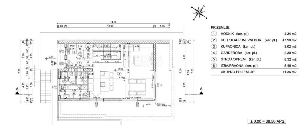 On the ground floor there is a spacious living room with dining room and kitchen, toilet, laundry room, storage room and engine room.