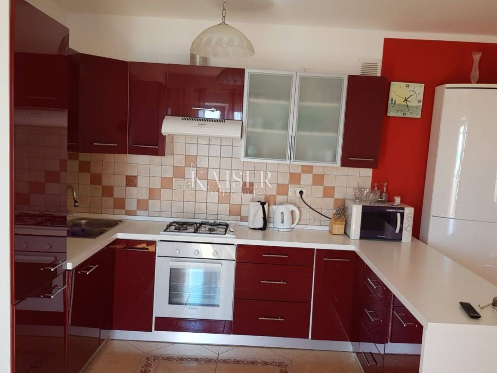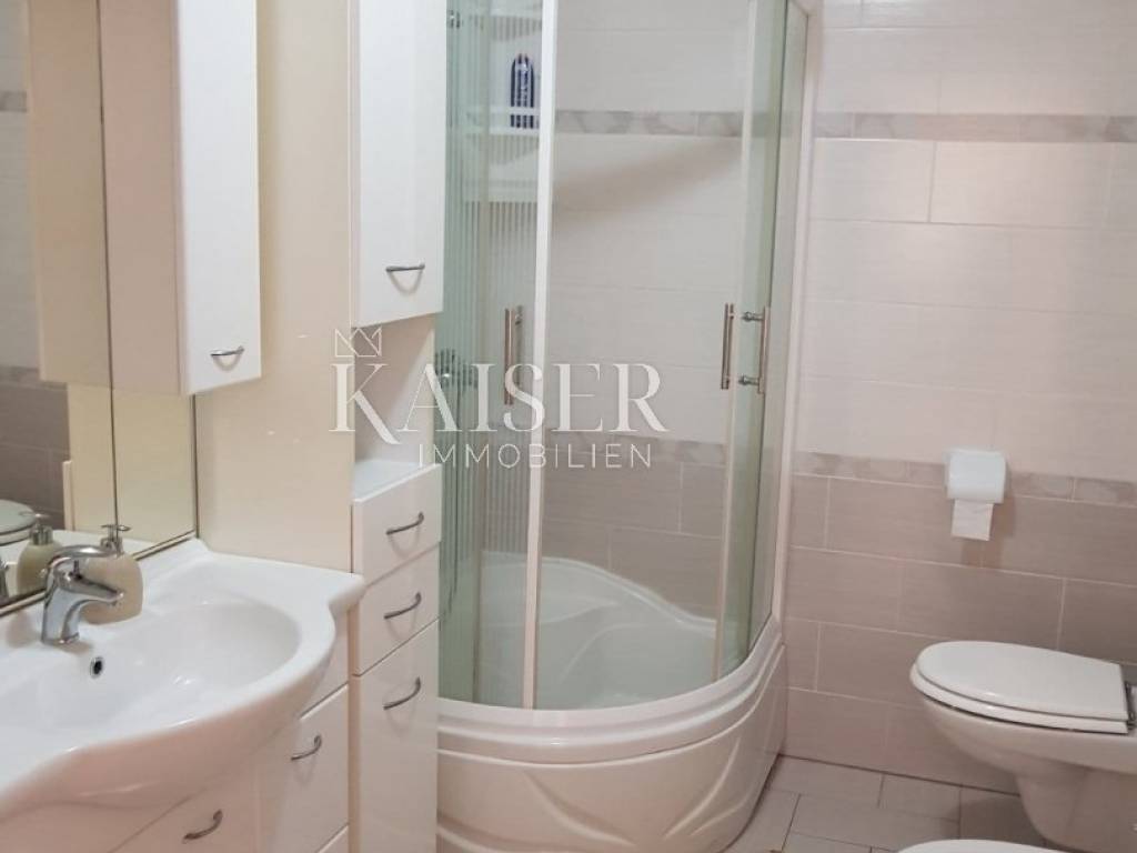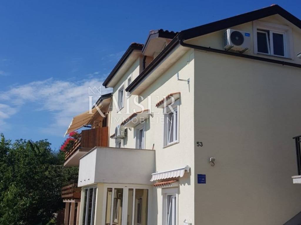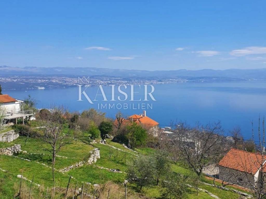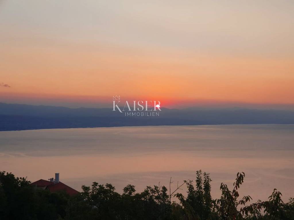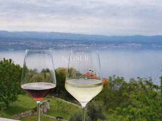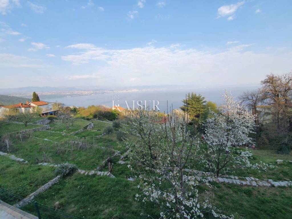 Kaiser Immobilien is selling a large house with three apartments in an excellent and quiet location just five minutes from Lovran. The house has a terrace with a breathtaking view of Kvarner. It is surrounded by greenery, and in the garden it has its own small private orchard. The house is semi-detached, but has its own asphalt driveway.