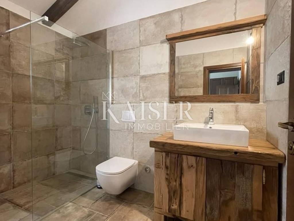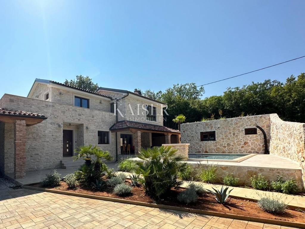 Kaiser Immobilien presents a beautiful stone house on the island of Krk in the vicinity of Dobrinje. The house has a net area of 150 m2, i.e. 220 m2 of living space. The house consists of a tavern, ground floor and first floor. On the ground floor there is a bathroom, a kitchen with a dining room and a spacious living room with access to a large covered terrace and garden. On the first floor there are 3 bedrooms, two of which have their own bathroom and exit to the terrace with jacuzzi. There is a swimming pool and a beautiful stone barbecue on the spacious garden of 450 m2. 32.5 m2 swimming pool with mosaic, waterfall and pool heating system. In addition, the pool uses salt water. The house has impressive equipment, including underfloor heating throughout the house, high-quality Salamander windows with triple glazing, Mitsubishi air conditioners, video surveillance for security, solid oak furniture and high-quality appliances. In addition to underfloor heating, a fireplace is also used for heating in the winter months, which gives the space a special atmosphere. There are also enough parking spaces for 5 vehicles, several of which are covered. The distance to the sea is 1200 meters. There is a shop nearby, and the city of Krk is only a 20-minute drive away, offering numerous everyday, cultural and entertainment facilities. Overall, this house offers a high standard of comfort and lifestyle. The property is an ideal investment for family life in a peaceful environment, but also as an investment if you want to engage in tourist rentals. For more information, contact an agent.