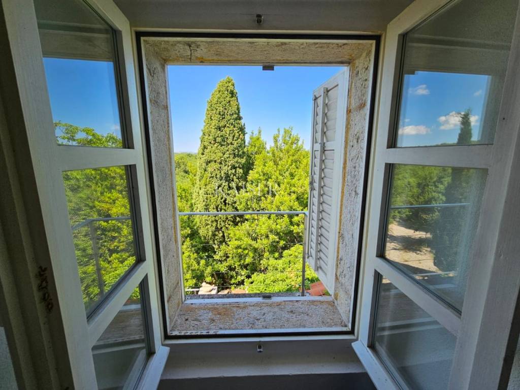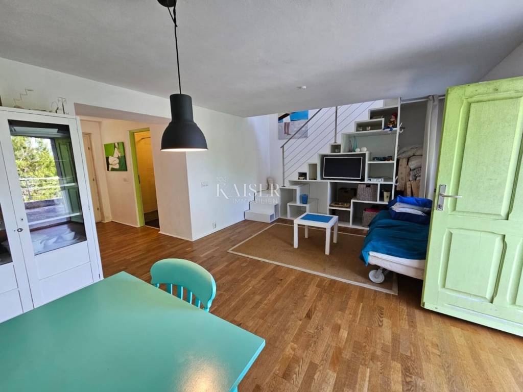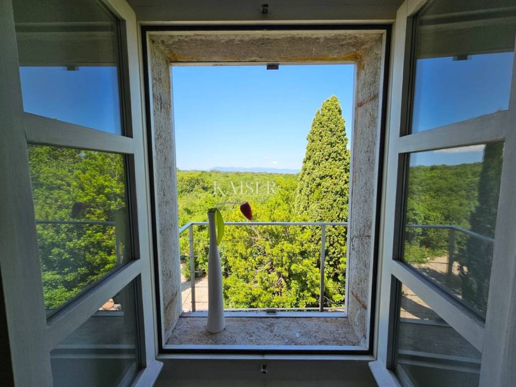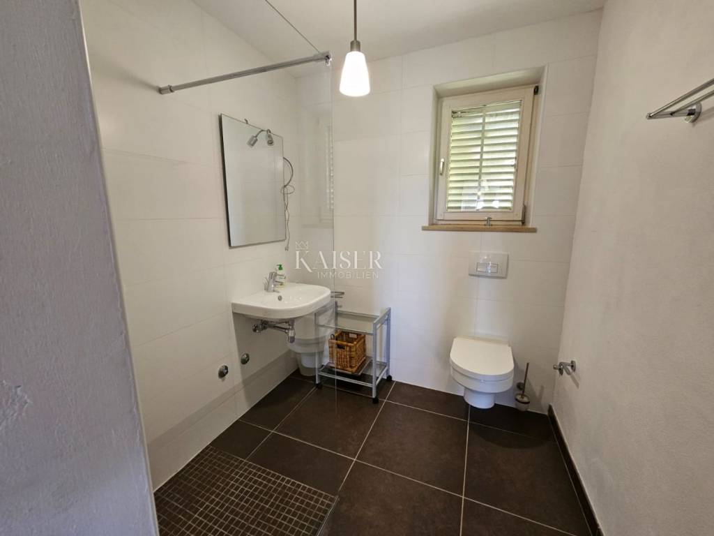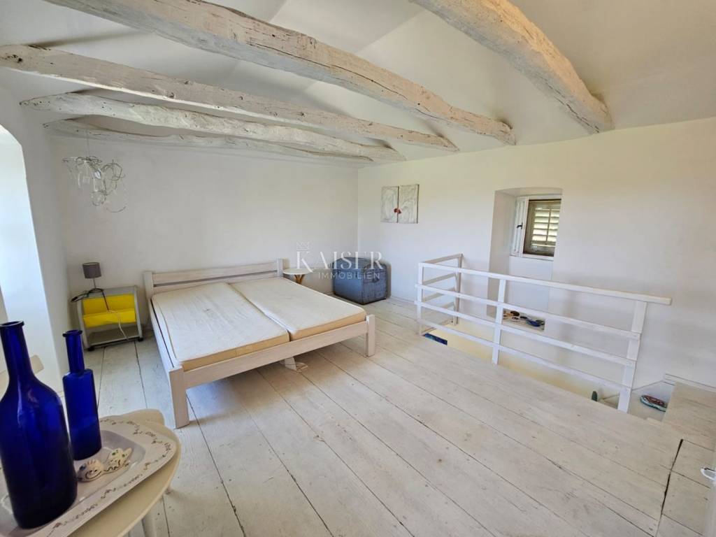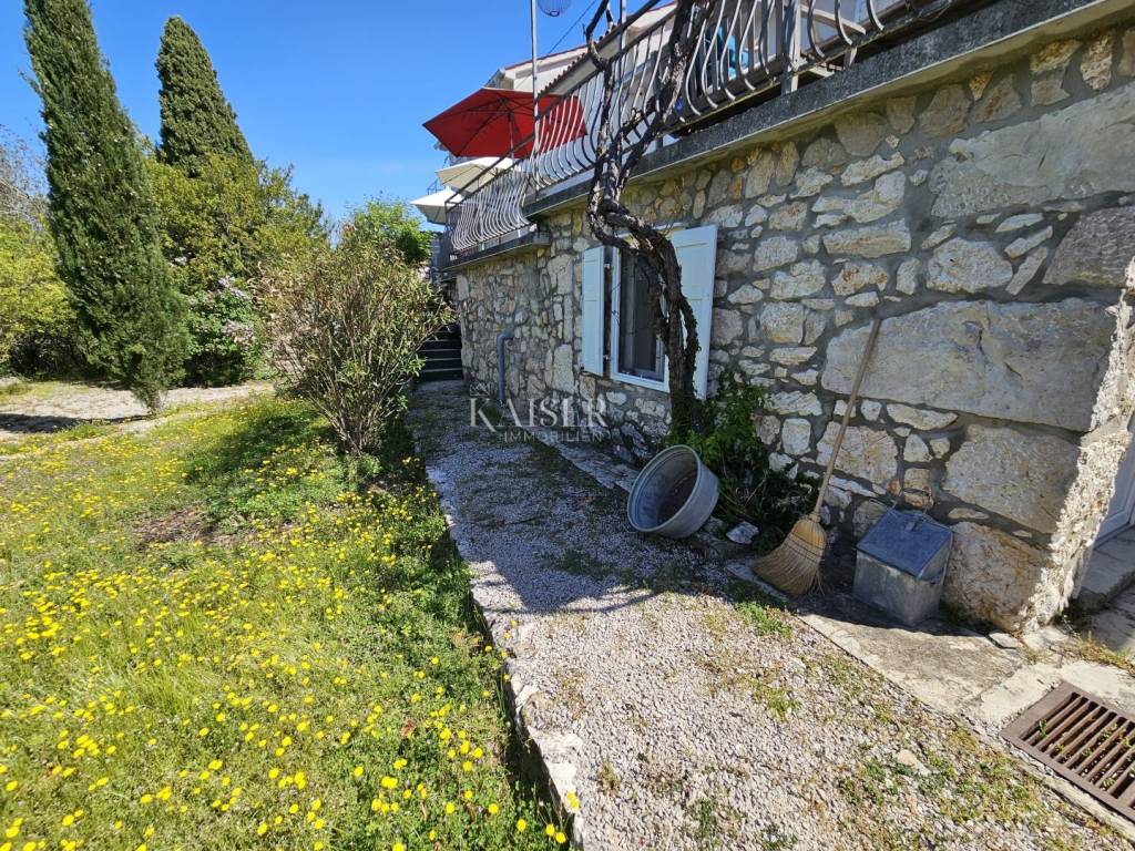 Kaiser immobilien mediates the sale of this beautiful property in the vicinity of Dobrinj on the island of Krk. In a peaceful and idyllic setting, on the edge of the green belt, the 1,500m2 property offers a peace that is difficult to describe in words. In nature, it is about three adapted stone houses in a row, each with a separate entrance, with a total living area of 150m2. The first house, ground floor, consists of an entrance hall, living room, kitchen and dining room, hallway, bathroom, storage room and bedroom. In the living room there is also a wood stove for heating and a special atmosphere. There are also inverter air conditioners in the living room and bedroom. The second house consists of a living room, a kitchen and a dining room and a bathroom, and the stairs lead to the mezzanine floor where the bedroom is located. The third house consists of a living room, a kitchen and a dining room and a bathroom, and the stairs lead to the first floor where there is a spacious bedroom. The bedroom opens onto a terrace with a wonderful view of the nearby forest and unique sunsets on the Mediterranean. The western orientation of the houses offers sufficient insolation, and all three houses have access to a spacious shared terrace, while two houses have access from the kitchen to the terrace on the east side of the house. Each house has its own tavern, and all the taverns together form an area of 100m2, currently serving as a storage room/tool room. The building's carpentry is wooden, in good condition, the floors are partly laminate, parquet and ceramics. The facility, although connected to the water supply, has a cistern for rainwater, which together with the water pump is in operation and provides water from renewable sources. The property was adapted in 2001 when, among other things, new electricity and water installations were made, and a new roof was made. A special advantage of this property is the spacious garden, which, in addition to the beautiful established horticulture, offers various possibilities. There is enough space for parking in the garden, and there is also a garage for one vehicle. The object is categorized for tourist rental and is sold fully equipped and furnished, without personal belongings. If you are looking for peace and rest for the soul, this is the right property for you, but also a great investment opportunity. The commission of the agency for the buyer is 3% + VAT and is paid in the case of real estate purchase, at the conclusion of the first legal deed. ID CODE 105-235