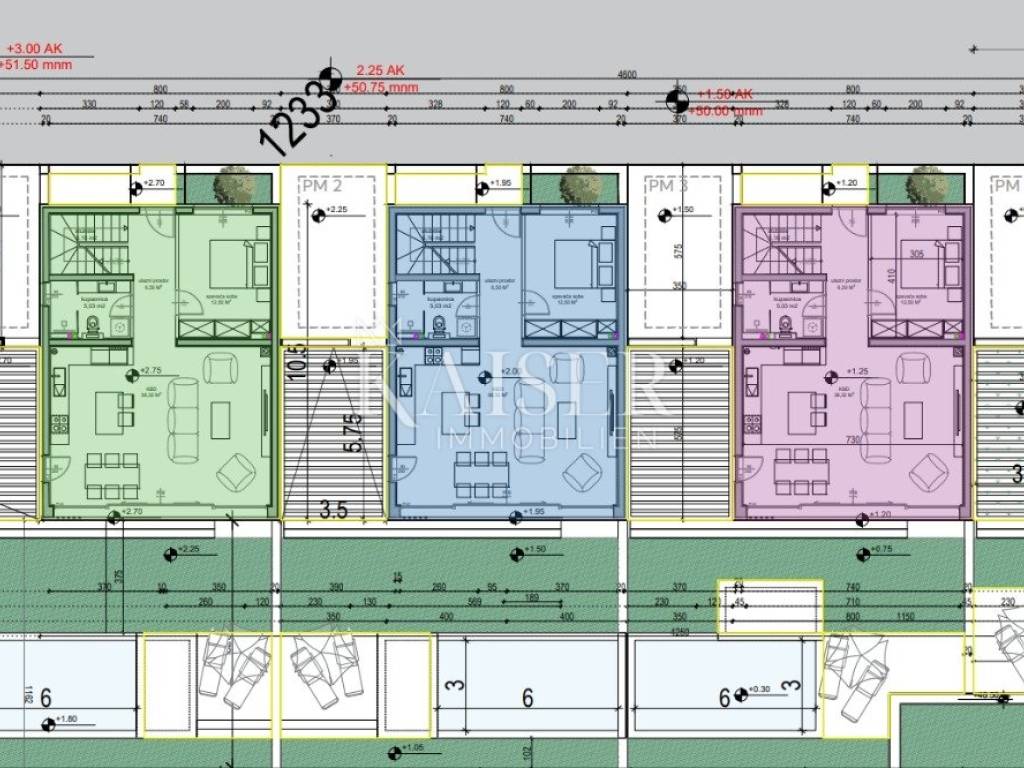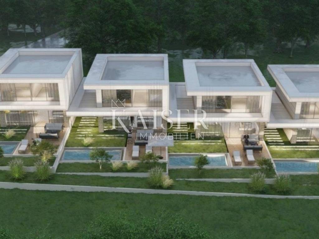 Kaiser Immobilien presents: Luxury two-storey terraced villa with swimming pool and sea view We present a luxury two-storey terraced villa, with a spacious garden, swimming pool and beautiful views of the sea and islands, which combines comfort with modern architecture. Total area 171.89 m². Additional advantages of the villa are an open concept living room and kitchen, spacious bedrooms with wardrobes and private bathrooms as well as a large terrace and garden. Built from high-quality materials, the villa has external walls made of reinforced concrete (20 cm), additionally insulated with EPS insulation (5-10 cm) and finished with facade plaster. An advanced thermal and sound insulation system ensures maximum comfort in every room. Customers are offered the opportunity to order and make custom-made furniture, tailored to personal wishes and needs. Each villa is separated by high perimeter walls that protect privacy and provide security. The main enclosure wall with a height of 1.80 m extends along the entire plot, while the second wall, located above the main enclosure wall, which divides the space between the villa and the yard, also has a height of 1.80 m. The villa consists of: Ground floor - Entrance area: 6.50 m² - Living room + dining room + kitchen: 38.32 m² - Staircase: 5.16 m² - Bedroom: 12.50 m² - Bathroom: 5.03 m² First floor - Hallway: 3.34 m² - Wardrobe: 3.60 m² - Bathroom: 4.47 m² - Bedroom: 19.44 m² - Entrance: 4.84 m² - Bathroom: 6.91 m² - Wardrobe: 4.86 m² - Bedroom: 14.22 m² Outdoor areas - Uncovered terrace: 47.23 m² - Garden: 70.79 m² - Pool: 24 m2 - Parking space: 20.12 m² Located in a quiet and picturesque Dalmatian village of Sv. Filip i Jakov, the villa is located in the immediate vicinity of Biograd na Moru and only 25 km from Zadar. This location provides a balance between privacy and proximity to all necessary amenities. Away from the hustle and bustle of the city, yet close to the sea and the town center, the villa is ideal for a relaxed life or a profitable tourist investment. Sv. Filip i Jakov, located on the Adriatic coast, is a place known for its beautiful beaches, crystal clear sea and indented coastline in the immediate vicinity of the Kornati National Park. It is located 4 km from the town of Biograd na Moru, and only 25km from the town of Zadar. Distances: A1 motorway (Benkovac exit) – 20 km Zadar airport – 25 km National parks: - Kornati (boat trips from the town) - Krka – 50 km - Paklenica – 60 km - Vrana Lake (nature park) – 10 km Split – 144 km Zadar – 25 km Don't miss the opportunity to become the owner of this luxurious home! The buyer's commission is 3% + VAT and is charged with the first legal act. For more information, please contact us with confidence: Tel.: 00385992510230 Email: marijana.papic@kaiser-immobilien.hr