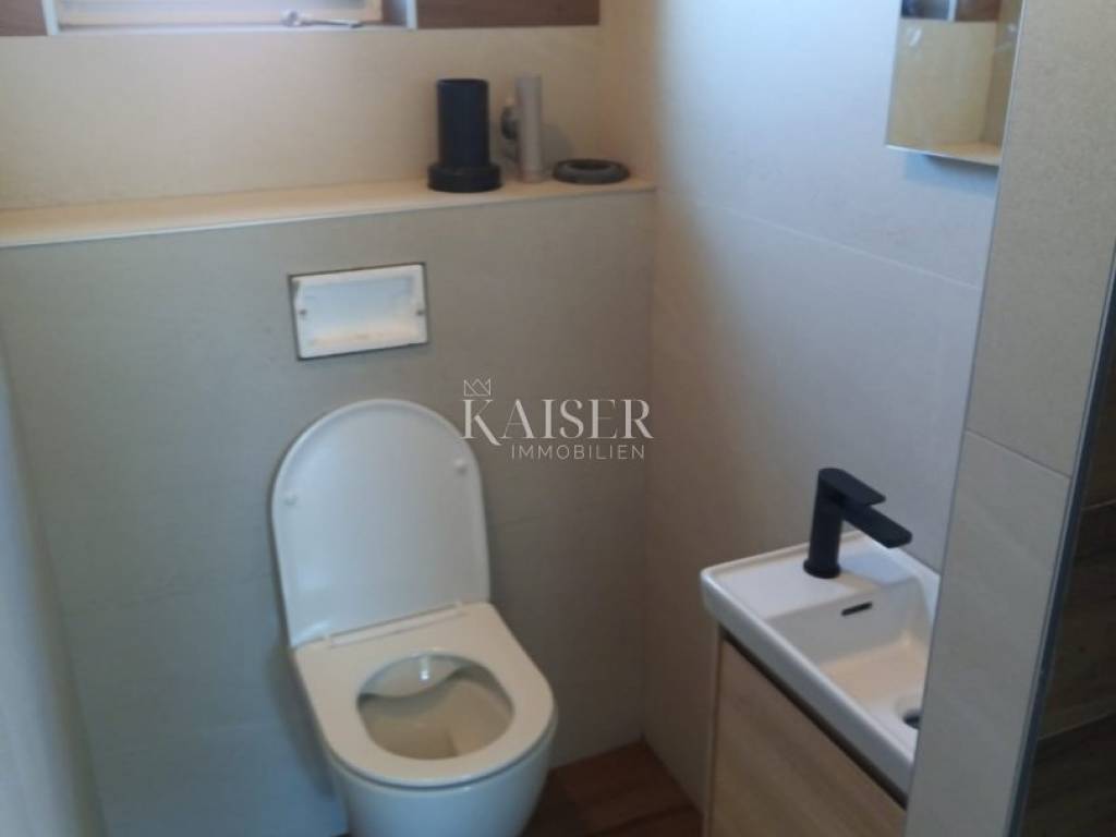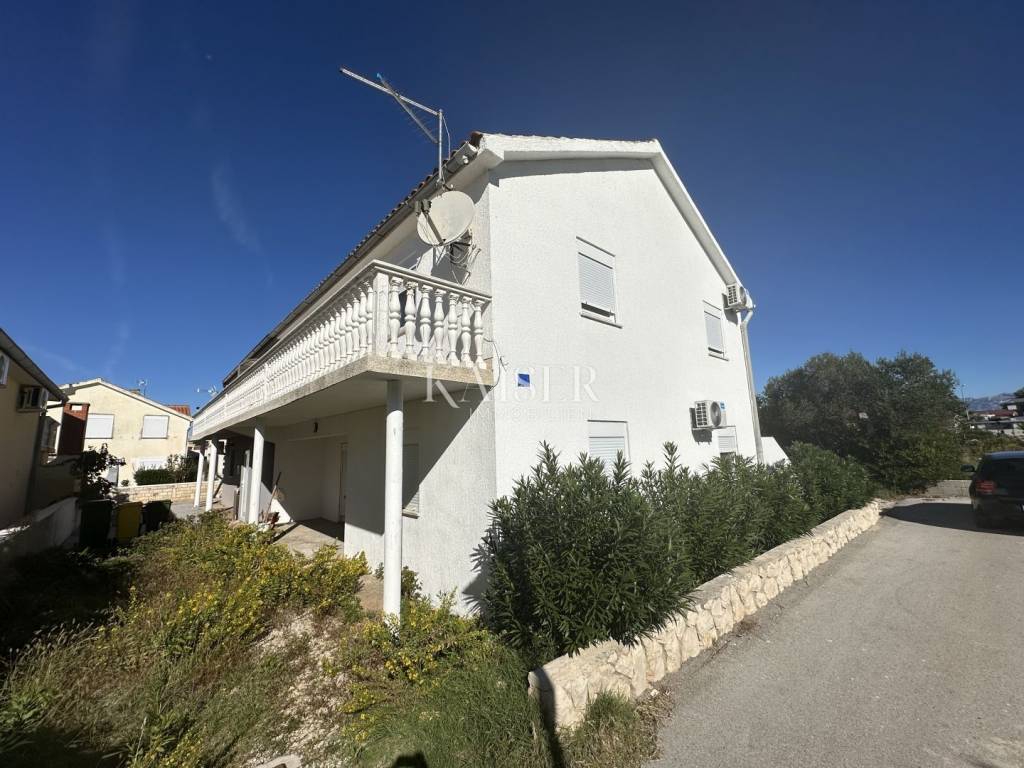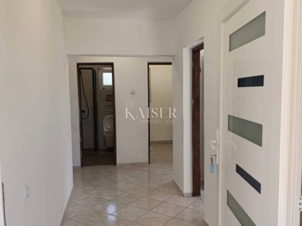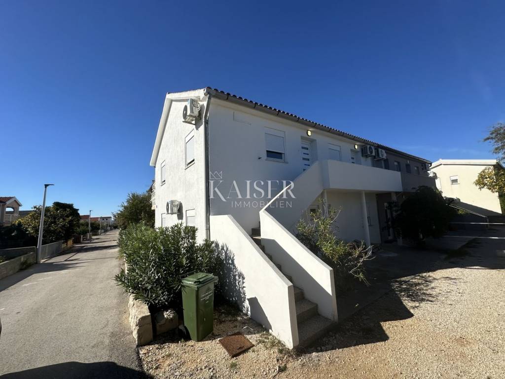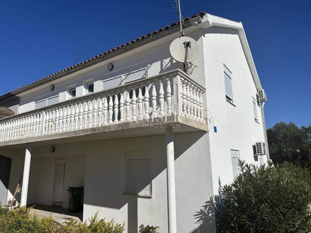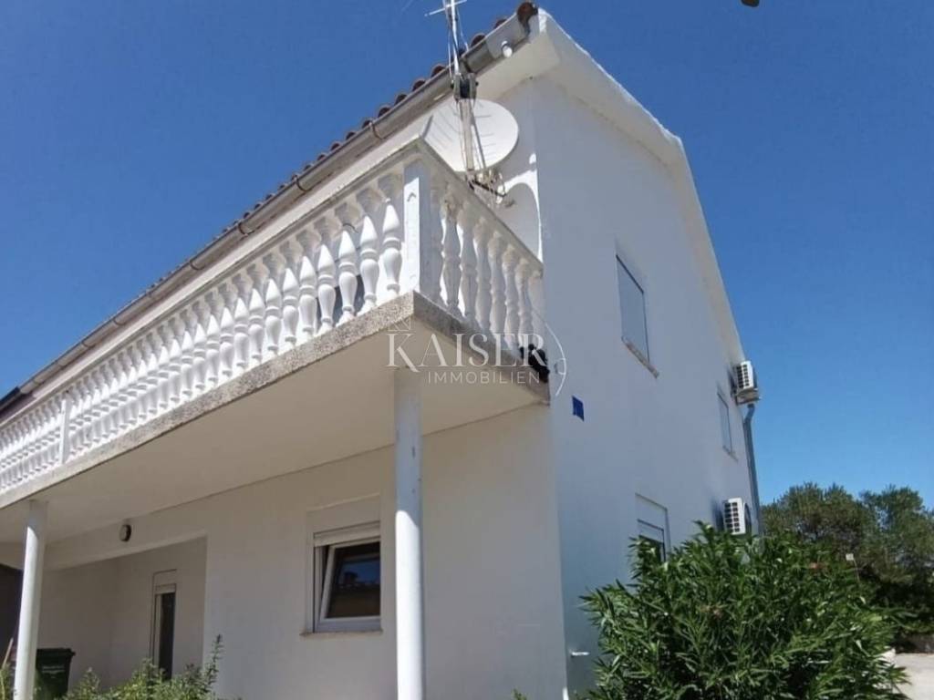 Kaiser Immobilien presents a spacious semi-detached house with three apartments on the island of Vir, just 200 m from the sea and a well-maintained beach. On the south side of the island of Vir, in a quiet but well-connected area, a semi-detached house with a total of three apartments is for sale, ideal for family life or tourist rental. In the immediate vicinity are well-maintained beaches, shops, a bakery and coffee bars - everything you need for a comfortable and relaxed life at sea. The house consists of a ground floor and an upper floor. On the ground floor there is a spacious two-room apartment (98.31 m²) with a comfortable living room, kitchen and dining room, two bedrooms, a bathroom with toilet, an additional room (laundry room) and a covered terrace - perfect for socializing together. On the upper floor there are two apartments (45.11 m² each) consisting of a living room with kitchen and dining room, bedroom, bathroom and terrace - ideal for guests, children or tourist rental. Additional practicality is provided by a storage room under the stairs. The house is being sold unfurnished, with new PVC joinery and aluminum shutters, and the bathrooms have been completely renovated. Connections to the city water supply and sewage system are an additional advantage. In front of the house is a garden with enough space to park several cars, while the other part is ideal for enjoying the shade and greenery. There is also a built-in barbecue - perfect for summer evenings and family gatherings. The island of Vir is one of the most sought-after and fastest growing tourist destinations in Zadar County. It is known for its crystal clear sea, numerous well-maintained beaches, rich gastronomic and entertainment offer, and excellent transport connections to the mainland via the bridge. This property offers the warmth of home, the smell of the sea at your fingertips, and enough space to create family memories. Documentation and ownership are in order. The agency's commission for the buyer is 3% + VAT and is paid in the case of purchasing a property, upon conclusion of the first legal act. Contact us with confidence for more information and to arrange a viewing. Phone: +385997031459 Email: vedran@kaiser-immobilien.hr