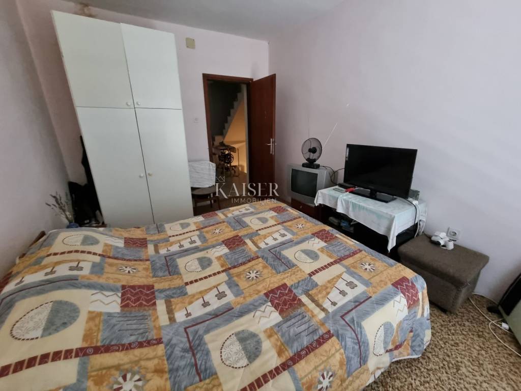 Kaiser Immobilien presents a detached house with a garden located near Grižan, 5 km from Crikvenica and the sea. The house has a total size of 330 m2 of living space and 533 m2 of garden. The house consists of a basement, ground floor, first floor, attic and garage. The ground floor consists of one bedroom, living room, kitchen, bathroom, hallway and entrance hall. The first floor consists of three bedrooms, a storage room, a bathroom and a hallway. In the attic, it is possible to build an apartment of about 40 m2 of living space. The floors are connected by an internal staircase. All three rooms on the first floor have access to their own balcony, and the corridor on the first floor leads to a separate balcony. There is also a balcony in the attic. The ground floor and first floor are fully furnished, but the house requires adaptation. The internal stairs to the attic are made of marble, while the external terraces and the wall on the front side are made of Brac stone. The basement is dry. The house is surrounded by nature, peace and quiet. Excellent position for a holiday home. For more information, contact the listed agent. Agency commission is 3% + VAT.