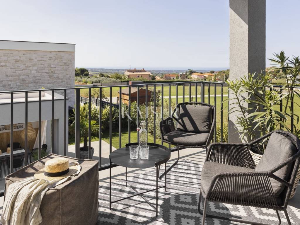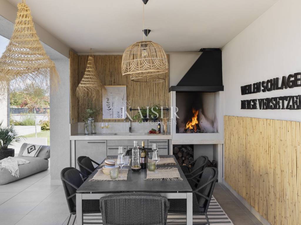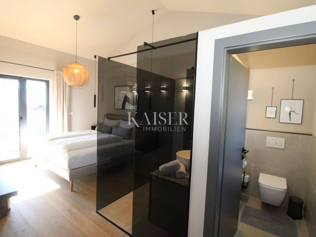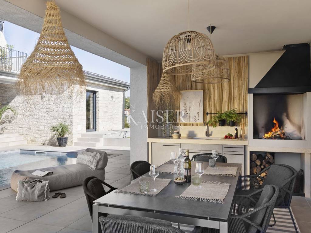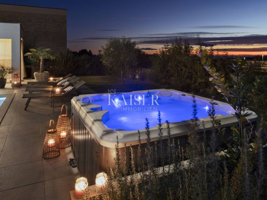Luxury villa with sea view - fully furnished and ready to enjoy Kaiser Immobilien is proud to present for sale an elegant luxury villa with a breathtaking sea view, located in a quiet and developed area near Poreč. Just a 15-minute drive from the sea and the city center, this property represents the perfect blend of modern design, comfort and Mediterranean charm. The villa is fully furnished and equipped and is being sold in excellent condition, ready to move in or continue a successful tourist rental. The owners have carefully designed and equipped it according to their own ideas, paying attention to every detail - from the selection of materials to decorative elements that give the space warmth and elegance. The property consists of a ground floor and an upper floor, with an additional outdoor relaxation area, sauna and storage space. On the ground floor there is a spacious open-concept living room with a kitchen and dining area that naturally connects to the terrace and pool, an ideal place to enjoy summer days. On the same floor there is a guest toilet, a bedroom with its own bathroom and a technical room equipped with a washing machine, dryer and storage room for maintaining the villa. An elegant wooden staircase leads to the first floor, where there are two more spacious bedrooms, each with its own en suite bathroom and access to a balcony with a magical view of the sea, pool and surrounding nature. The villa is equipped with a heat pump and underfloor heating system, and each room has a separate air conditioning. The carpentry is three-layered and electric, made of top-quality materials that ensure comfort and energy efficiency. There are several parking spaces in the garden, and connection to the city sewer is in progress. Thanks to its excellent location, attractive design and high-quality construction, this villa represents an excellent opportunity for private residence or as an investment for tourist rental. A unique combination of luxury, peace and Mediterranean spirit - your new home by the sea. Dear clients, it is possible to view the property only with a signed brokerage contract, which is the basis for further actions related to the purchase and sale and the collection of commission, all in accordance with the Real Estate Brokerage Act. The KAISER IMMOBILIEN agency, as an authorized real estate broker, charges a brokerage fee of 3% + VAT from the buyer and seller for the brokerage service at the time of concluding the Preliminary Agreement or Purchase Agreement. Telephone: 00385923782803 Email address: ivana@kaiser-immobilien.hr. Seller: Ivana Gašparini.