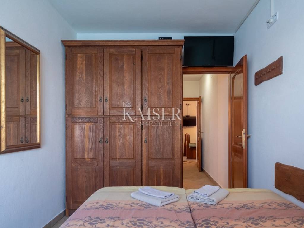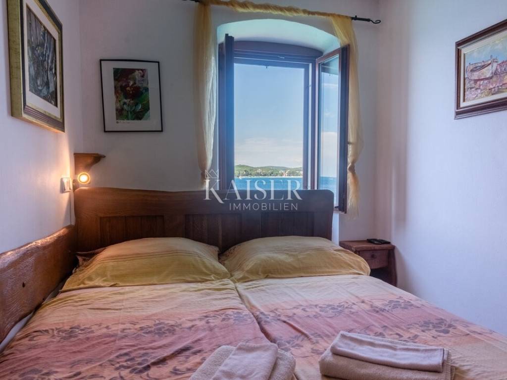 Rovinj, the pearl of Istria, is one of the most charming coastal towns on the Adriatic. Picturesque stone streets, the recognizable bell tower of the Church of St. Euphemia and the picturesque coast create a unique Mediterranean atmosphere. This historic town offers a rich cultural heritage, top-notch gastronomic experiences and crystal clear sea, making it the perfect destination for vacation and living. Kaiser Immobilien presents a beautiful 45 m² apartment located on the first floor of an authentic stone building in the very heart of the old town of Rovinj, in an extremely rare location - first row to the sea. Upon entering the apartment, you enter the hallway from which immediately on the right is the first bedroom, comfortably furnished with a double bed and a window overlooking a romantic Rovinj alley surrounded by traditional stone houses, creating an impressive atmosphere of typical Mediterranean life. Continuing through the hallway, you open up the living area, which naturally combines functionality and the charm of the old town architecture. The living room offers a wonderful view of Rovinj. The kitchen is fully equipped with an electric Candy stove, Zanussi oven and Candy refrigerator with freezer. The dining table with four chairs is positioned in a way that allows for pleasant dining with daylight filling the space, creating a warm and cozy atmosphere. From the living area, you enter another hallway that leads to a separate toilet, and immediately after that there is a bathroom equipped with a shower and toilet and a connection for a washing machine, which further contributes to the practicality of everyday living. At the very end of the hallway is the second bedroom, an intimate and quiet space whose windows frame a view of the sea. The apartment is heated by electric heaters, and air conditioning is not needed thanks to the pleasant summer temperature provided by its location within the old town center. The entire apartment has ceramic flooring that makes maintenance easy, while the property requires minor renovation. The wooden joinery is made according to the regulations of the city of Rovinj and emphasizes the authentic character of this historic environment. Although the apartment does not have its own parking space, its value is further increased by the fact that it is located in an old stone building with several apartments, which has a shared terrace on the ground floor with direct access to the sea. This rare amenity makes the apartment even more special and offers an irreplaceable feeling of Mediterranean life. This property represents an extraordinary opportunity for anyone looking for a unique combination of historical charm, proximity to the sea and the attractiveness of the old town of Rovinj. With an established rental for almost the entire year and a perfect location for a summer residence, the apartment offers the ideal balance of investment and enjoyment. Proximity to amenities: Restaurant - 100 m Café - 90 m Shop - 350 m Market: 300 m Landmarks: 10 m Church of St. Eufemije: 200 m Sea- 1 m Beach- 1 m-200m Marina- 700 m Parking- 650 m Post office- 800 m Müller- 850 m Bus station: 850 m Airport- 40 km Distance from major cities: Rovinj- Ljubljana: 186 km Rovinj- Vienna: 567 km Rovinj- Budapest: 591 km Rovinj- Prague: 838 km Rovinj- Munich: 587 km Rovinj- Zagreb: 250 km The agency commission for the buyer is 3% + VAT and is paid in the case of purchasing a property, upon conclusion of the first legal act. Interested buyers can view only after signing a real estate brokerage contract. ID-CODE: 127-187 If you would like to visit the property in person, please contact: Jennifer Hofmann E-mail: jennifer@kaiser-immobilien.hr Tel: +385-91-515-0887 http://kaiser-immobilien.hr/