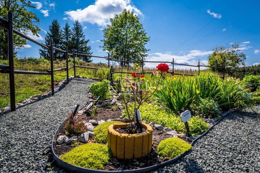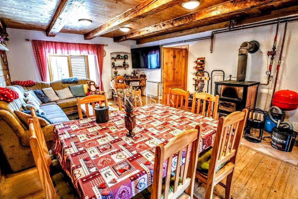 The Kaiser Immobilijen real estate agency presents a beautiful semi-detached house located in a peaceful and picturesque mountain setting, ideal for family life or as a luxurious weekend retreat in nature. The house exudes warmth and comfort, and the spacious hallway provides access to all the main rooms on the ground floor: a comfortable bedroom, a cozy living room perfect for family gatherings, and an additional bedroom with its own bathroom, which provides maximum privacy. Stairs lead from the hallway to the first floor. The living room is connected to another bedroom and a functionally furnished kitchen. The kitchen leads to a second bathroom and exits to a large terrace - ideal for relaxing, socializing, and enjoying beautiful nature. The courtyard (1,000 m²) is a true oasis of peace: a covered area with a barbecue, beautifully landscaped walkways, a large children's playground among tall fir trees, a wooden house for tools and wood, a carefully landscaped garden like a mini botanical garden, rich in plants and flowers. The interior of the house enchants with luxurious wooden details that create a feeling of warmth and elegance. The house has central heating with wood, which allows for a comfortable stay all year round. There is also a spacious basement of approximately 100 m² – ideal for storage or additional facilities. The house is located along the road, which ensures easy access, while the layout of the plot provides complete privacy. This is the perfect property for anyone who wants peace, nature and comfort – whether for permanent living or an escape from the hustle and bustle of the city. The buyer's brokerage fee is 3% plus VAT and includes all services related to the purchase of the property. It is charged only after the initial transaction is completed, which guarantees buyers a safe and transparent process. For more information or to arrange a viewing appointment, please contact: Nikolina Štimac Mobile: +385 99 722 0135, +385 99 567 7888 nikolina@kaiser-immobilien.hr