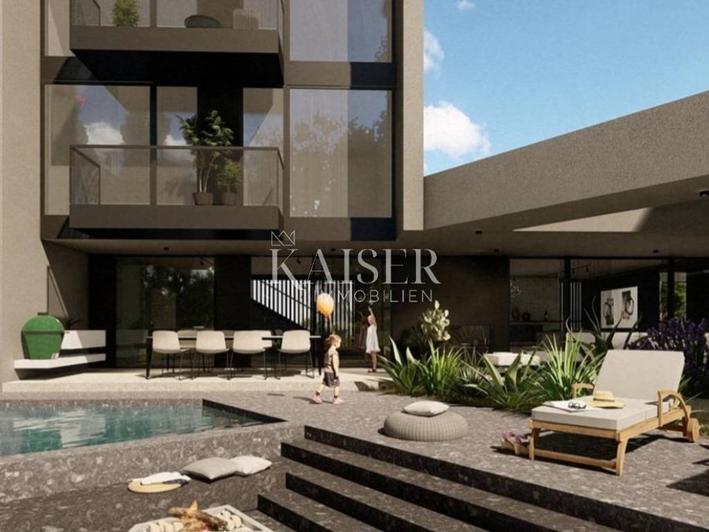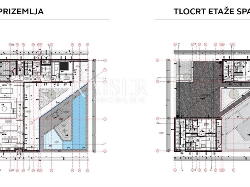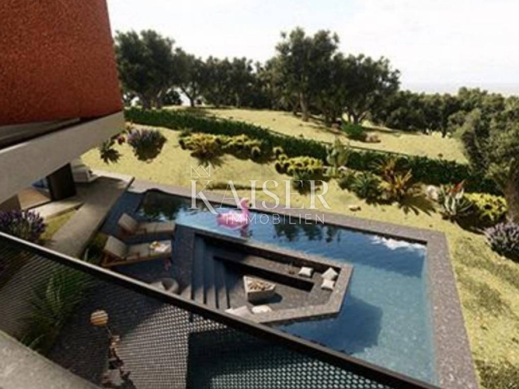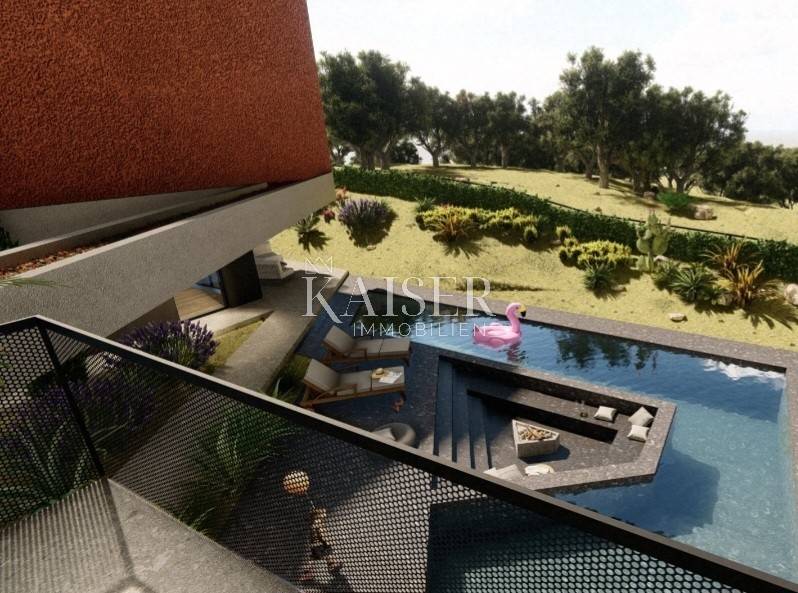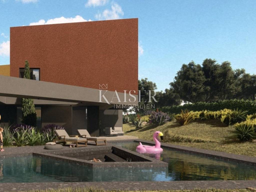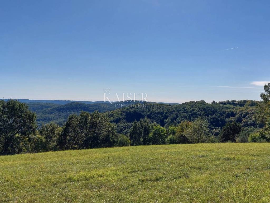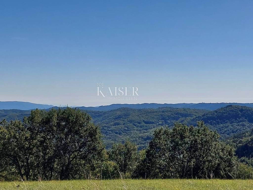 Kaiser Immobilien presents a unique project with a view of the entire central Istria. The location of this luxury project is in the central part of Istria, more precisely a small town above Lake Butoniga and near the beautiful Motovun, a popular tourist destination. These lands are slightly separated from the town itself, which gives them a very peaceful and relaxed atmosphere. We can call this project a refuge in peaceful nature. Land for three modern villas with a pool on a beautiful hill, at 460 m above sea level with a 360-degree view of the Istrian landscape on one side, and Učki on the other, Istria is literally in the palm of your hand. On building plots of 1,370 m2, 1,265 m2 and 1,239 m2, building permits were obtained for family houses of 410 m2 gross area, with a heated pool of 56 m2 gross area. The ground floors are designed as spacious open living rooms, kitchens, dining rooms, which are connected with several glass walls to the exterior where there are beautiful multi-level swimming pools. In that ground floor there is also a wellness area. The sleeping area is designed in "towers" on the first and second floor, in six sleeping units, each with its own bathroom. Each bedroom will be designed for comfort and peace, offering stunning views of the landscape. From the "towers", in addition to the beautiful view of the outside landscape, an inward view of the green extensive roof that covers the first floors is envisioned. The overall interior is designed in a very modern way, while still following the basic ideas of the Istrian region. All expenses are paid, and construction can start immediately. The owner has all offers for the completion of the construction, including horticulture and interior decoration. It is planned to build houses with floors P+2, with a large living room and kitchen, a wellness/sauna area, and a total of 6 bedrooms (2 master bedrooms), each with its own bathroom. Heating and cooling will be provided by a heat pump that will be connected to underfloor heating and fan coils. Installation for a photovoltaic power plant (solar panels) to produce electricity is planned. These modern villas, apart from the basic things it will have premium amenities such as smart homes, climate control and security measures to ensure comfortable and safe living.Access is from an asphalt road with sewerage infrastructure underneath. 4 parking spaces are provided on the plots. For all information, contact your agent.