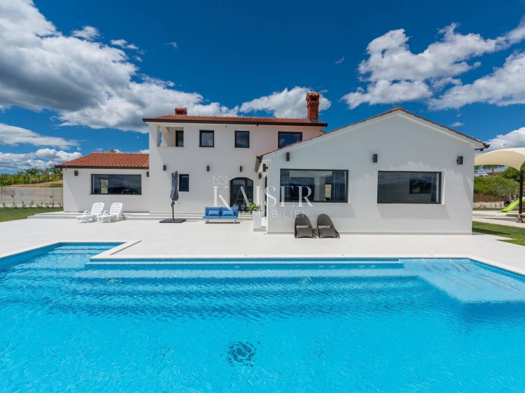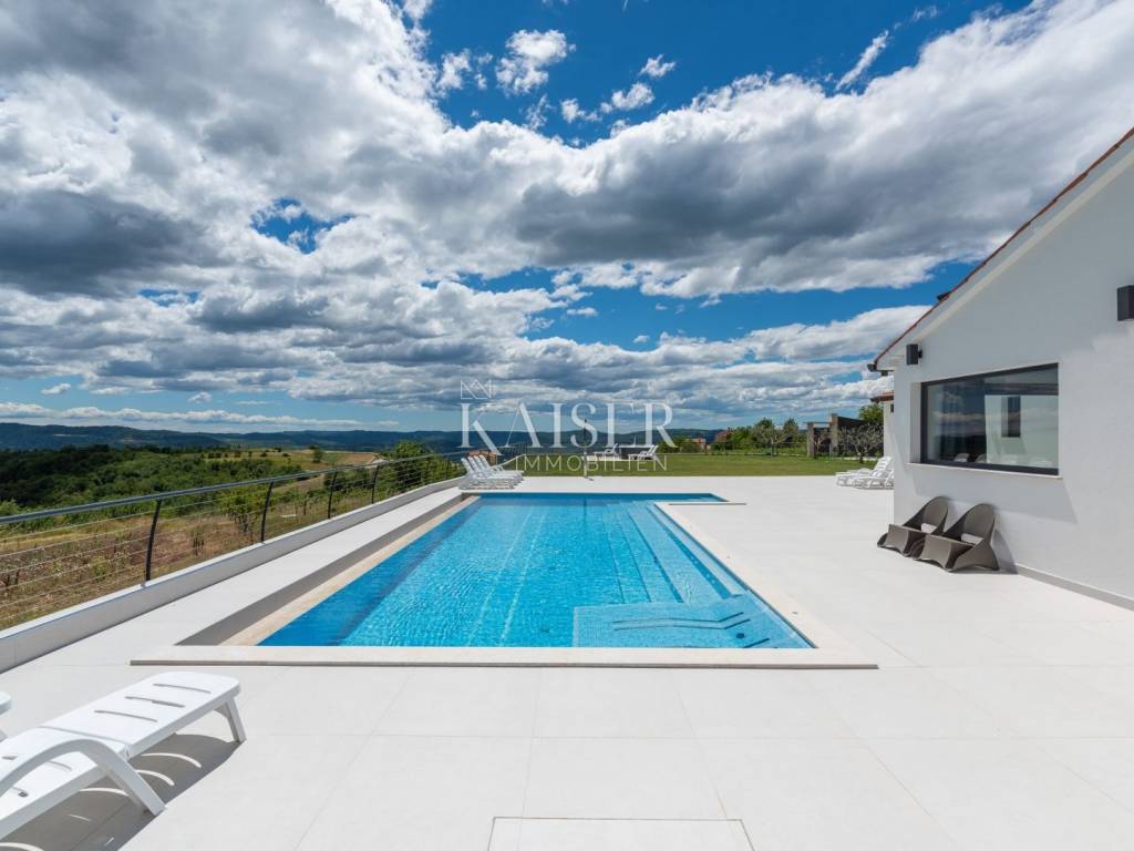 Kaiser Immobilien proudly presents a luxury villa with a unique panoramic view, located just a few minutes' drive from the heart of the picturesque Istrian town of Buzet.