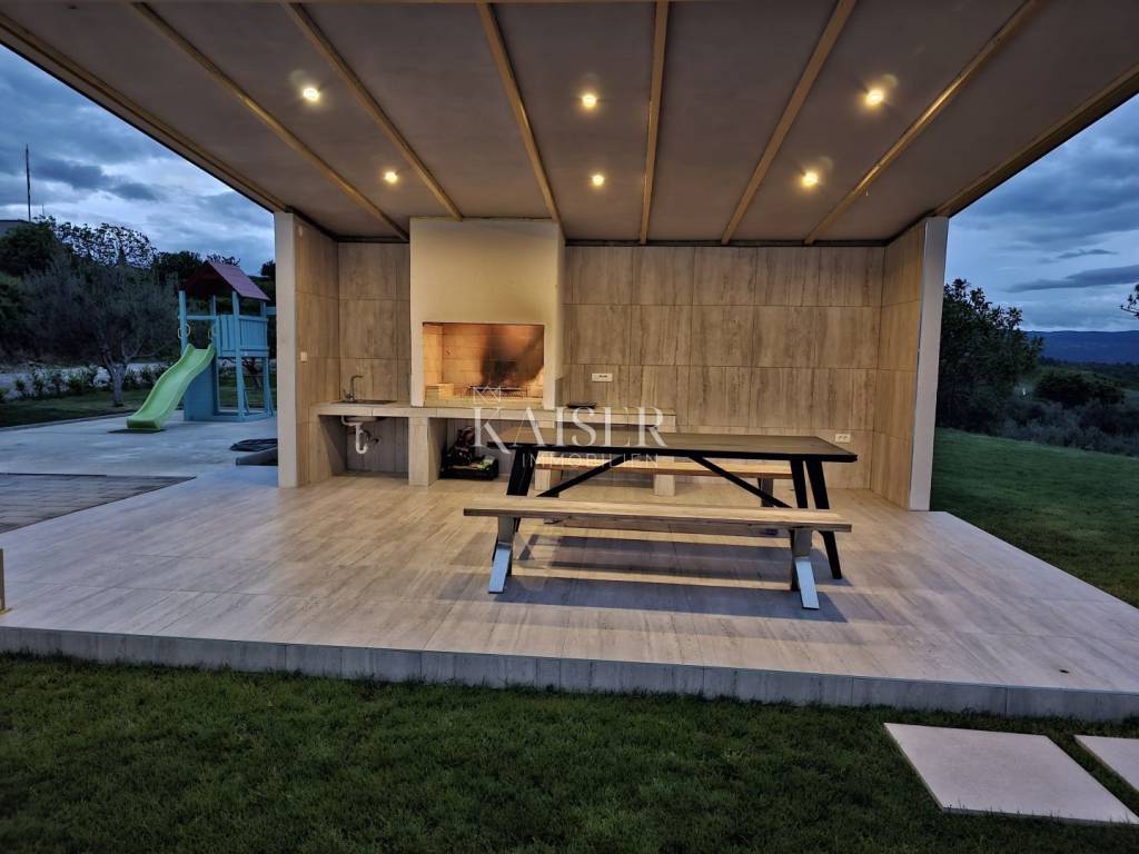The 3,175 m² garden has been carefully landscaped to allow maximum enjoyment of the outdoors. The dominant position is occupied by a spacious swimming pool with luminous tiles, which creates a special atmosphere in the evening hours, while not far from it is a Jacuzzi with already planned water and electricity connections, intended for the construction of a sauna. The entire outdoor area is complemented by quality garden furniture and a barbecue, which makes this villa a perfect place for socializing and relaxing with family and friends.
