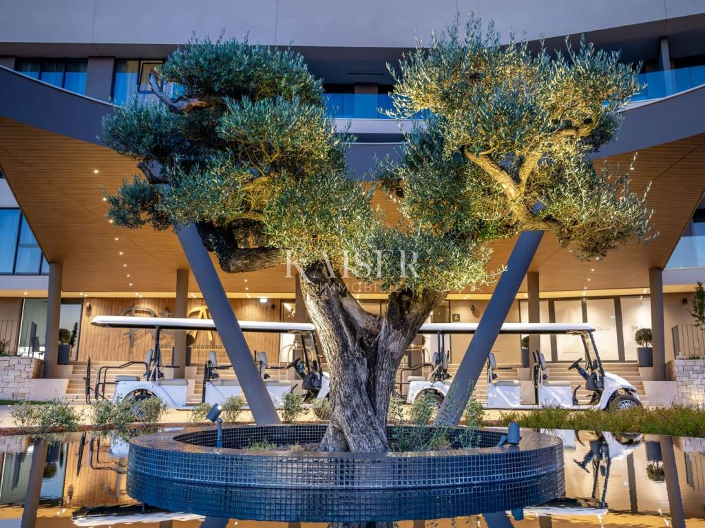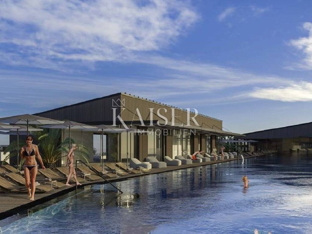 Savudrija, a quiet fishing village in the very north of Croatian Istria, is a carefully guarded secret of the Mediterranean. It is famous for the oldest active lighthouse in this part of the Adriatic, and is an ideal place to relax body and soul. Quiet and peaceful, perfect for an escape from everyday life, and at the same time rich in amenities and activities that will turn your vacation into an exciting adventure. Discover numerous wine roads, top-notch sports and cultural facilities, olive oil roads and romantic Istrian medieval towns. Laid by the waves of the Adriatic, in the shade of rich fragrant vegetation and with a view that takes your breath away, there is a luxury resort. Built to the highest standards and equipped with all the services and additional amenities you could wish for, this resort offers the peace, quiet and luxury of your own property, while at the same time enjoying a service that will pamper you and allow you to have relaxed and unforgettable days of vacation. Here, the unlimited relaxation of staying in your own property is combined with top-notch services, and all you have to do is enjoy the amenities: Rooftop infinity pool of 105 m - the largest rooftop infinity pool in Europe. It provides you with a unique swimming experience with a stunning view of the Piran Bay and the Dolomite Alps. The central garden pool is a favorite choice for family relaxation because part of the pool is adapted to the depth of children and is ideal for playing. Right next to the resort is a beach where you can relax with the smell of the sea and the sound of the waves. Wellness: relax in the magical hands of wellness experts who will give you the right advice and provide a personalized ritual treatment after which you will feel reborn. Kaiser Immobilien presents you with beautiful and modern apartments perfectly integrated into the Mediterranean climate. High construction standards allow you to immerse yourself in the resort's offer, while at the same time ensuring complete privacy, luxury and peace intended only for you and your loved ones. Priority use of all services in the resort is ensured at all times. New materials, fresh design ahead of trends, sustainable construction, aromatic Mediterranean horticulture and unobstructed views, combined with an innovative concept of real property maintenance and management, with service worthy of a five-star hotel. The care of the property can be completely left to the resort, which ensures a carefree holiday, and as an upgrade and return on investment. You and your money are safe here - all you have to do is enjoy. Opt for one of the luxury apartments. You can choose the size of the apartment, the style of interior decoration and the type of maintenance. After that, you can relax and enjoy. Investing in an apartment in a resort is an investment in a carefree, hedonistic holiday for the whole family. Services and facilities at your disposal: • 24-hour supervision • maintenance service • concierge • transfers (by road or sea) from Venice, Pula, Rijeka and Trieste • on-site caretaker • electric buggy - free transport to the nearby beach • electric car charging station • restaurants and cafes by the pool on the ground • gym and sports facilities • on-site shopping • luxury restaurant on the roof terrace of the aparthotel (main building) • wellness & SPA • swimming pools with children's facilities • children's playground • babysitting service on request • private chef service on request • 101m long infinity pool on the roof terrace level • indoor pool area on the roof terrace level • private beach with bar • pool at ground level (garden pool) • children's pool at ground level We highlight the professional 18-hole Adriatic golf course, which is located in the immediate vicinity, by the sea, and the construction of another golf course is in preparation. We highlight a one-bedroom apartment of 61m2 adapted to the needs of people with disabilities: the width of the doors, the lack of glass in the shower cabins and the height of the upper kitchen units. The apartment consists of a living room and kitchen, a bedroom, a bathroom and a spacious balcony: your private luxurious piece of paradise. The apartment is located in building C within easy reach of all the resort's facilities. The apartment is sold equipped with modern and stylish furniture. Savudrija is located near several airports, the largest of which is Venice Airport. In addition, nearby airports are Ljubljana, Trieste, Pula and Rijeka, while Zagreb Airport is a 2.5-hour drive away. Savudrija is located 515 km from Vienna and 460 km from Milan. The property is subject to VAT, so the buyer does not pay the 3% real estate tax. The agency's commission for the buyer is 3% + VAT. The commission covers all services related to the purchase and is paid only in the case of purchasing a property, upon concluding the first legal act. If you want this luxury apartment in the resort to become your new home, please contact us. Damir Mlacović e-mail: damir@kaiser-immobilien.hr tel: +385-98-339-933