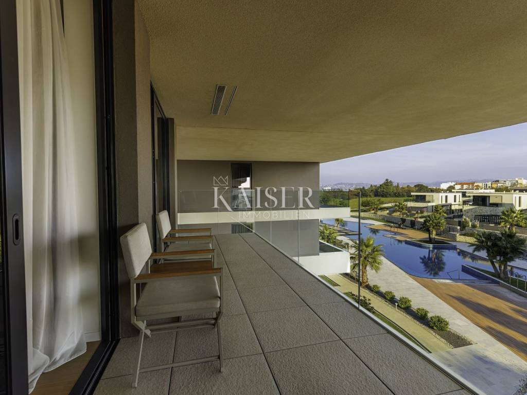 Savudrija, a quiet fishing village in the very north of Croatian Istria, is a carefully guarded secret of the Mediterranean. It is famous for the oldest active lighthouse in this part of the Adriatic, and is an ideal place to relax body and soul. Quiet and peaceful, perfect for an escape from everyday life, and at the same time rich in amenities and activities that will turn your vacation into an exciting adventure. Discover numerous wine roads, top-notch sports and cultural facilities, olive oil roads and romantic Istrian medieval towns. Laid by the waves of the Adriatic, in the shade of rich fragrant vegetation and with a view that takes your breath away, there is a luxury resort. Built to the highest standards and equipped with all the services and additional amenities you could wish for, this resort offers the peace, quiet and luxury of your own property, while at the same time enjoying a service that will pamper you and allow you to have relaxed and unforgettable days of vacation. Here, the unlimited relaxation of staying in your own property is combined with top-notch services, and all you have to do is enjoy the amenities: Rooftop infinity pool of 105 m - the largest rooftop infinity pool in Europe. It provides you with a unique swimming experience with a stunning view of the Piran Bay and the Dolomite Alps. The central garden pool is a favorite choice for family relaxation because part of the pool is adapted to the depth of children and is ideal for playing. Right next to the resort is a beach where you can relax with the smell of the sea and the sound of the waves. Wellness: relax in the magical hands of wellness experts who will give you the right advice and provide a personalized ritual treatment after which you will feel reborn. Kaiser Immobilien presents you with beautiful and modern apartments perfectly integrated into the Mediterranean climate. High construction standards allow you to immerse yourself in the resort's offer, while at the same time ensuring complete privacy, luxury and peace intended only for you and your loved ones. Priority use of all services in the resort is ensured at all times. New materials, fresh design ahead of trends, sustainable construction, aromatic Mediterranean horticulture and unobstructed views, combined with an innovative concept of real property maintenance and management, with service worthy of a five-star hotel. The care of the property can be completely left to the resort, which ensures a carefree holiday, and as an upgrade and return on investment. You and your money are safe here - all you have to do is enjoy. Opt for one of the luxury apartments. You can choose the size of the apartment, the style of interior decoration and the type of maintenance. After that, you can relax and enjoy. Investing in an apartment in a resort is an investment in a carefree, hedonistic holiday for the whole family. Services and facilities at your disposal: • 24-hour supervision • maintenance service • concierge • transfers (by road or sea) from Venice, Pula, Rijeka and Trieste • on-site caretaker • electric buggy - free transport to the nearby beach • electric car charging station • restaurants and cafes by the pool on the ground • gym and sports facilities • on-site shopping • luxury restaurant on the roof terrace of the aparthotel (main building) • wellness & SPA • swimming pools with children's facilities • children's playground • babysitting service on request • private chef service on request • 101m long infinity pool on the roof terrace level • indoor pool area on the roof terrace level • private beach with bar • ground-level pool (garden pool) • children's pool on the ground level We highlight the professional 18-hole Adriatic golf course located in the immediate vicinity, by the sea, and the construction of another golf course is in preparation. We present the one-bedroom apartment C35 with an area of 64m2. The apartment consists of a living room and kitchen, bedroom, bathroom and balcony: your private luxurious piece of paradise. The apartment is located in building C, close to all the resort's facilities, especially the wellness and indoor pool located on the roof of building C. The apartment is sold furnished with modern and stylish furniture. Savudrija is located near several airports, the largest of which is Venice Airport. In addition, nearby airports are Ljubljana, Trieste, Pula and Rijeka, while Zagreb Airport is a 2.5-hour drive away. Savudrija is located 515 km from Vienna and 460 km from Milan. The property is subject to VAT, so the buyer does not pay the 3% real estate tax. The agency's commission for the buyer is 3% + VAT. The commission covers all services related to the purchase and is paid only in the case of purchasing a property, upon concluding the first legal act. If you want this luxury apartment in the resort to become your new home, please contact us. Damir Mlacović e-mail: damir@kaiser-immobilien.hr tel: +385-98-339-933