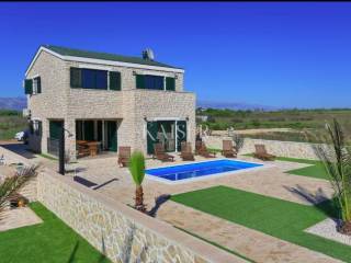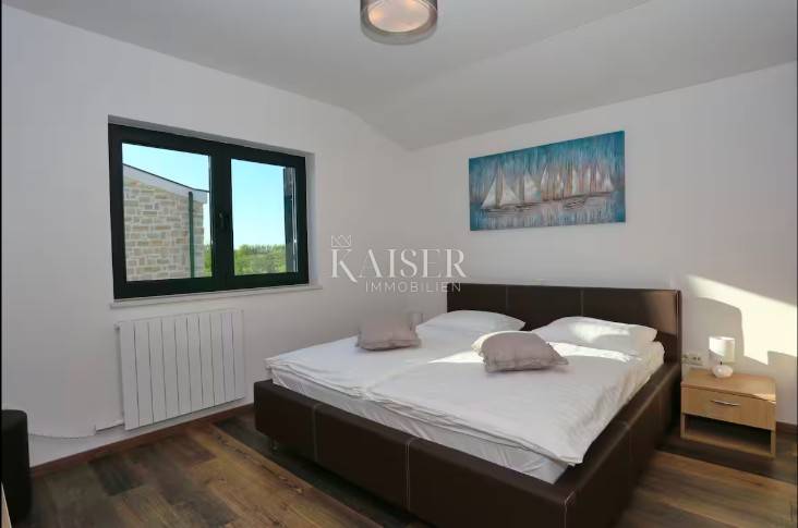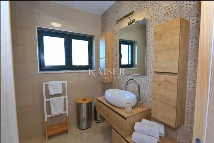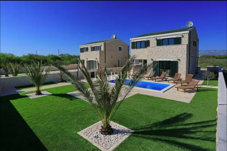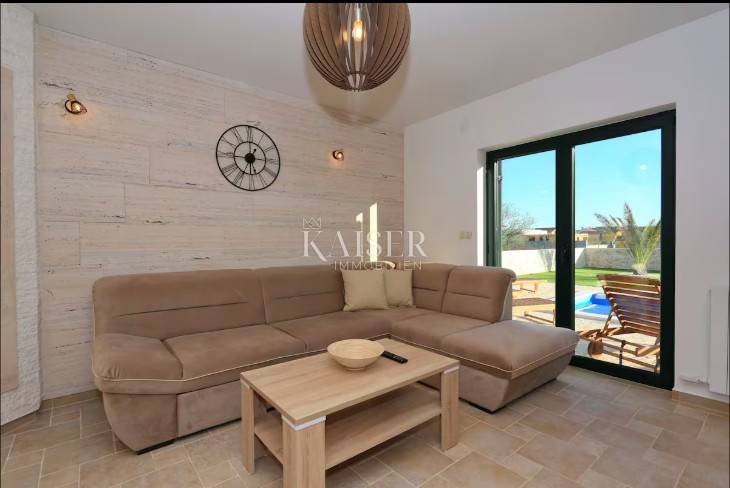 Kaiser Immobilien offers a Mediterranean stone detached house with a swimming pool, located in a quiet part of Privlaka, near the sea, beach and town center. The house is built on a plot of 445 m², while the living area is 110 m², distributed over the ground floor and first floor.