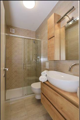 Upstairs there are three bedrooms, neatly arranged and adapted for family or guest stays. Two rooms have access to a terrace with a partial view of the sea, while the view of the greenery and mountains further ensures peace and privacy.