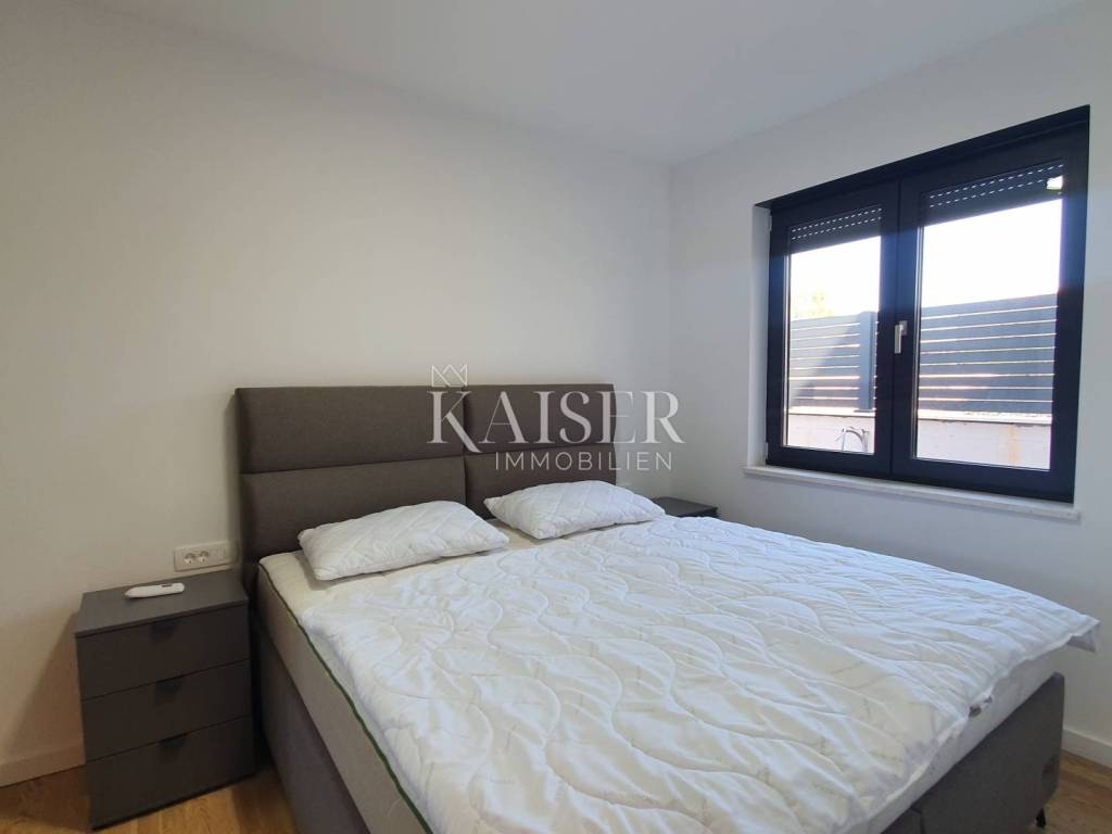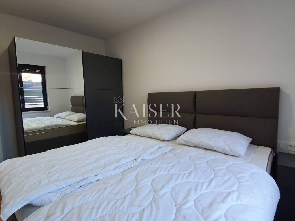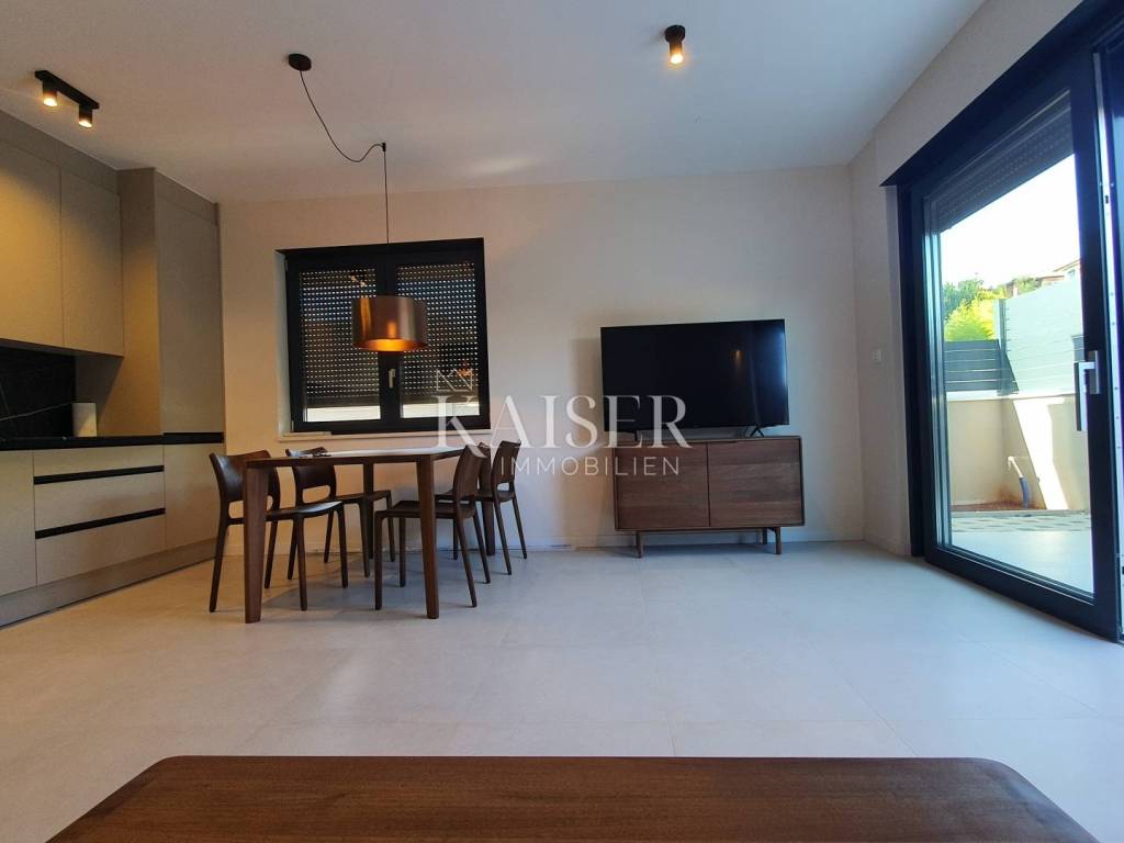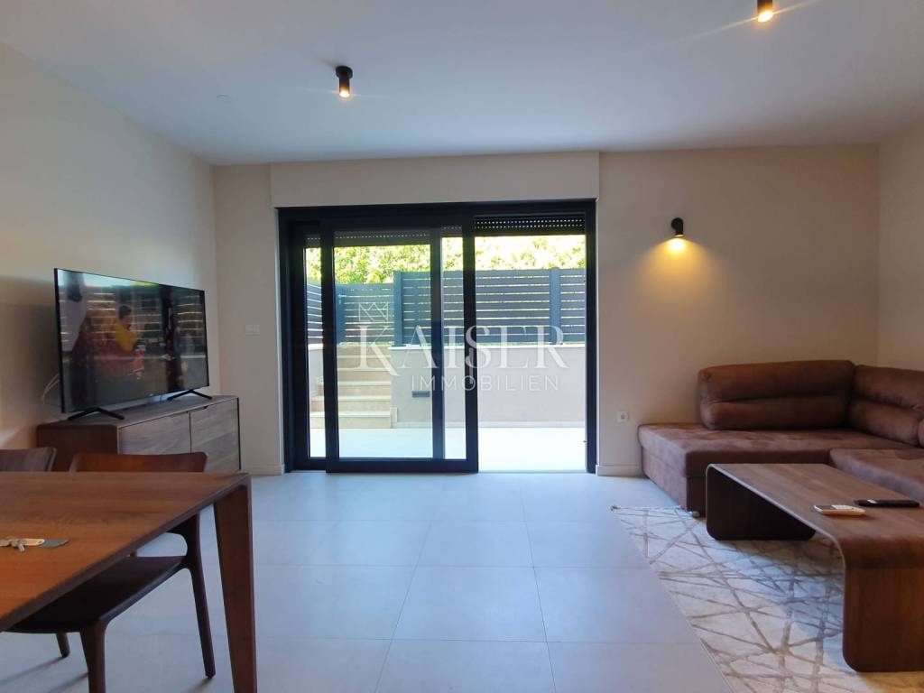 Kaiser Immobilien offers a unique opportunity for sale – a fully furnished and modernly decorated apartment on the ground floor of a new building, located just 500 meters from the sea and only a 5-minute drive from the center of Poreč. The apartment is located in an extremely attractive location, surrounded by luxury villas with swimming pools, modern residential buildings and newly renovated infrastructure – asphalt roads and public lighting. This property represents the perfect combination of comfort, privacy and modern design and is an excellent opportunity for both a peaceful family life and an investment in tourist rental. Apartment characteristics: - Apartment area: 65 m² - Two bedrooms - One modern bathroom - Spacious living room connected to the kitchen and dining room - Each room equipped with air conditioning - Underfloor heating for complete comfort throughout the year - Large garden of approximately 300 m² - with the possibility of building a swimming pool, garden house or additional facilities - Two parking spaces included in the price - Two entrances to the apartment - one through the building, the other directly from the parking lot - Electric windows with triple-glazed glass The apartment is sold fully equipped with new furniture, which allows the future owner to move in immediately without additional investments. Location advantages: - quiet and popular area near the sea - close to the center of Poreč (5 minutes drive) - surrounded by luxury villas and modern facilities - developed infrastructure (new roads, lighting, parking lots) ✨ This property is a truly unique opportunity - a modern and beautifully decorated ground floor apartment with a large garden and the possibility of additional facilities. It is ideal for family life, vacation or as a safe investment in tourist rental in one of the most sought-after locations in Istria. If you are looking for a new apartment in an attractive location, please contact us with confidence at: Phone: 00385923782803 Email address: ivana@kaiser-immobilien.hr. Seller: Ivana Gašparini. The agency commission is 3% + VAT, and is charged with the first legal act.