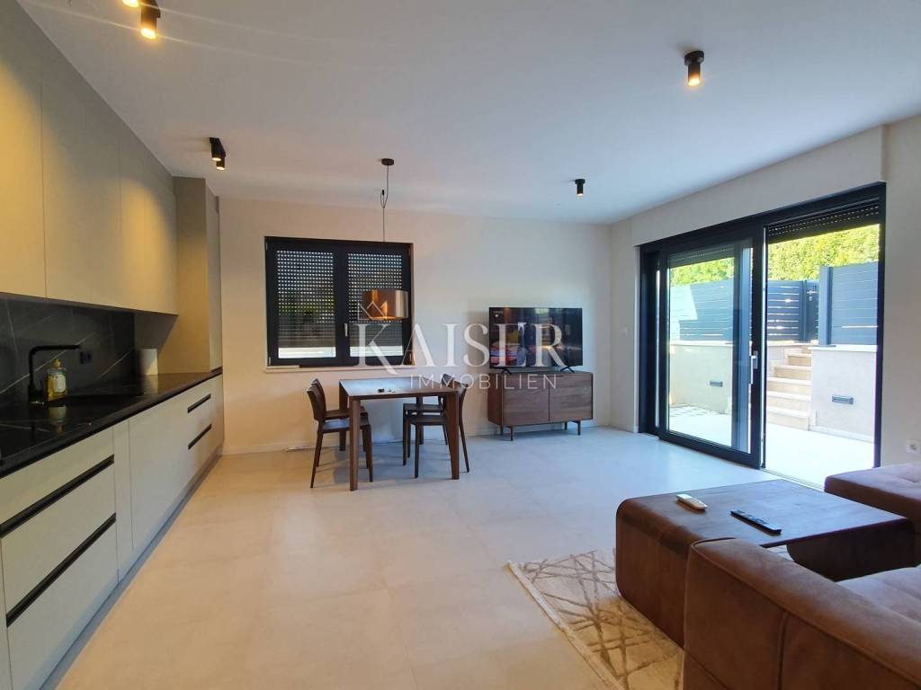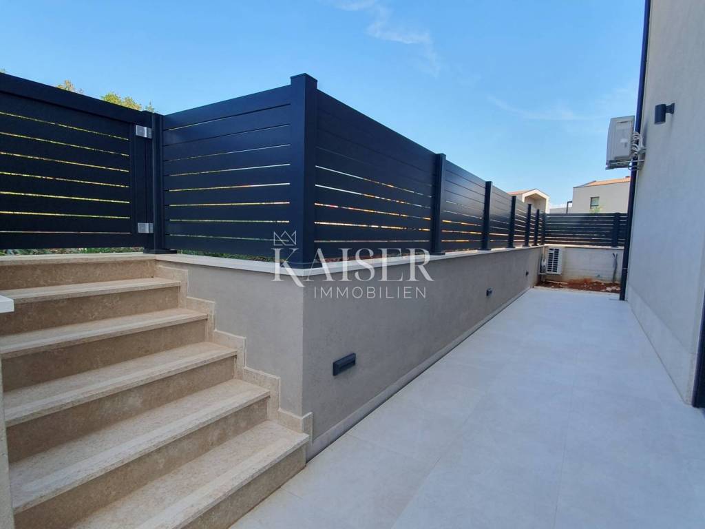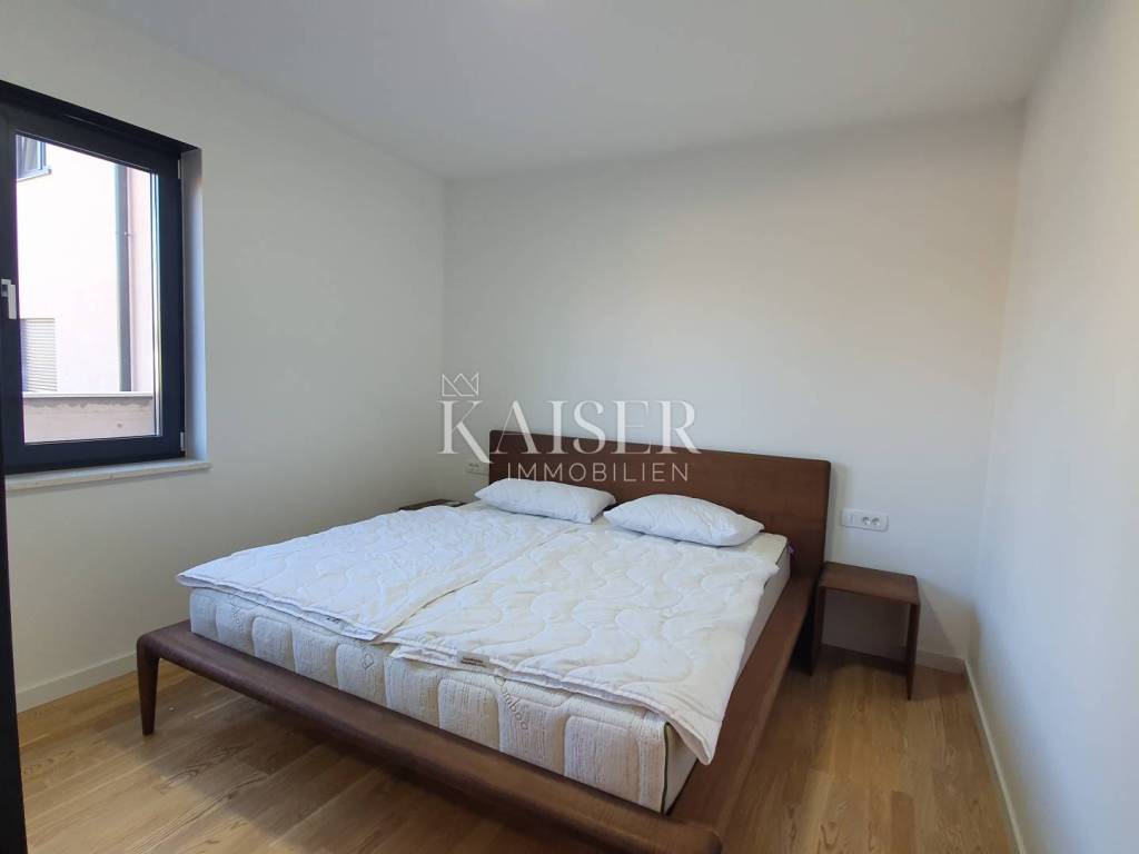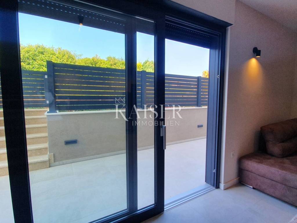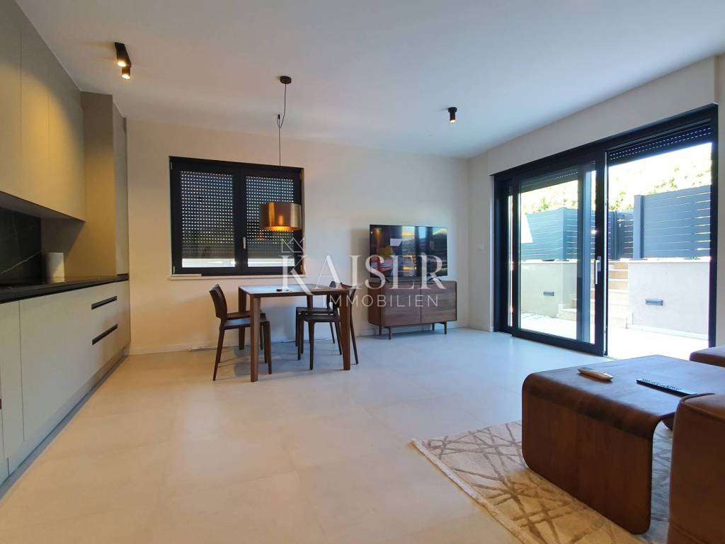 Kaiser Immobilien offers a unique opportunity for sale – a fully furnished and modernly decorated apartment on the ground floor of a new building, located just 500 meters from the sea and only a 5-minute drive from the center of Poreč. The apartment is located in an extremely attractive location, surrounded by luxury villas with swimming pools, modern residential buildings and newly renovated infrastructure – asphalt roads and public lighting. This property represents the perfect combination of comfort, privacy and modern design and is an excellent opportunity for both a peaceful family life and an investment in tourist rental. Apartment characteristics: - Apartment area: 65 m² - Two bedrooms - One modern bathroom - Spacious living room connected to the kitchen and dining room - Each room equipped with air conditioning - Underfloor heating for complete comfort throughout the year - Large garden of approximately 300 m² - with the possibility of building a swimming pool, garden house or additional facilities - Two parking spaces included in the price - Two entrances to the apartment - one through the building, the other directly from the parking lot - Electric windows with triple-glazed glass The apartment is sold fully equipped with new furniture, which allows the future owner to move in immediately without additional investments. Location advantages: - quiet and popular area near the sea - close to the center of Poreč (5 minutes drive) - surrounded by luxury villas and modern facilities - developed infrastructure (new roads, lighting, parking lots) ✨ This property is a truly unique opportunity - a modern and beautifully decorated ground floor apartment with a large garden and the possibility of additional facilities. It is ideal for family life, vacation or as a safe investment in tourist rental in one of the most sought-after locations in Istria. If you are looking for a new apartment in an attractive location, please contact us with confidence at: Phone: 00385923782803 Email address: ivana@kaiser-immobilien.hr. Seller: Ivana Gašparini. The agency commission is 3% + VAT, and is charged with the first legal act.