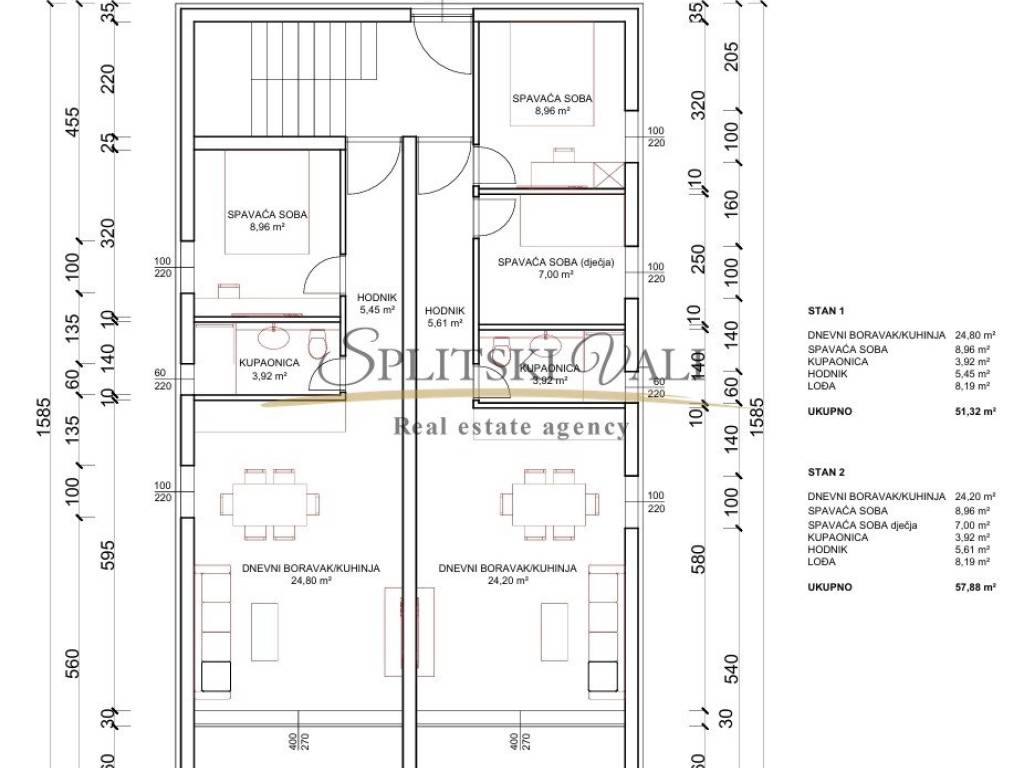 Posredujemo u ekskluzivnoj prodaji luksuznog jednosobnog stana u izgradnji stambene površine 51,32m2 koji se nalazi u prizemlju novogradnje u Kaštel Štafiliću, u neposrednoj blizini plaže. Sastoji se od hodnika (5,45m2), kuhinje s blagovaonicom i dnevnog boravka otvorenog tipa (24,80m2), spavaće sobe (8,96m2), kupaonice (3,92m2) te lođe (8,19m2). U cijenu je uključeno jedno vanjsko parking mjesto. Stanu pripada i vrt površine 21m2. Plaćanje je po fazama gradnje ili prema dogovoru. Očekivano useljenje je početkom 2027.