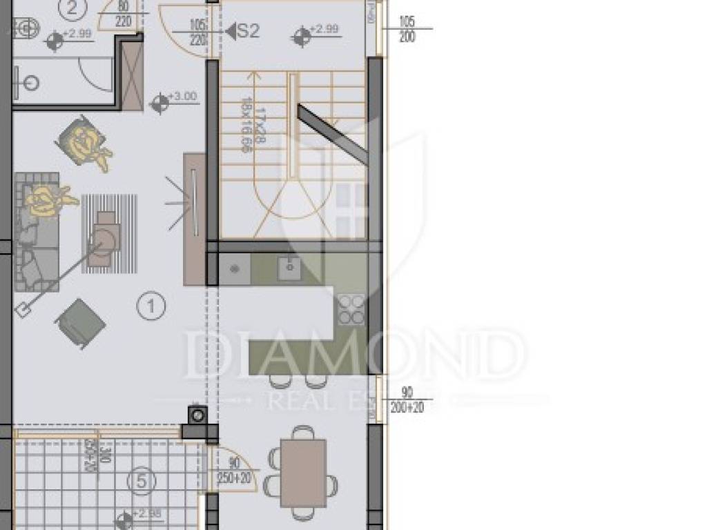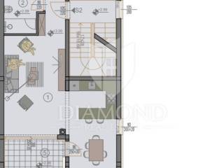 The apartment is located on the first floor of a smaller residential building. The building consists of a total of 3 apartments, which gives great privacy to the future owner of the apartment. The apartment with a total square footage of 71.50 m2 consists of a living room with access to the terrace, a kitchen and a dining room with access to the terrace, a bathroom and two spacious bedrooms. The apartment also has a storage room of 2.03 m2, which is not included in the square footage of the apartment, as are two parking spaces. The apartment will be finished by the end of 8 months/ 2024.