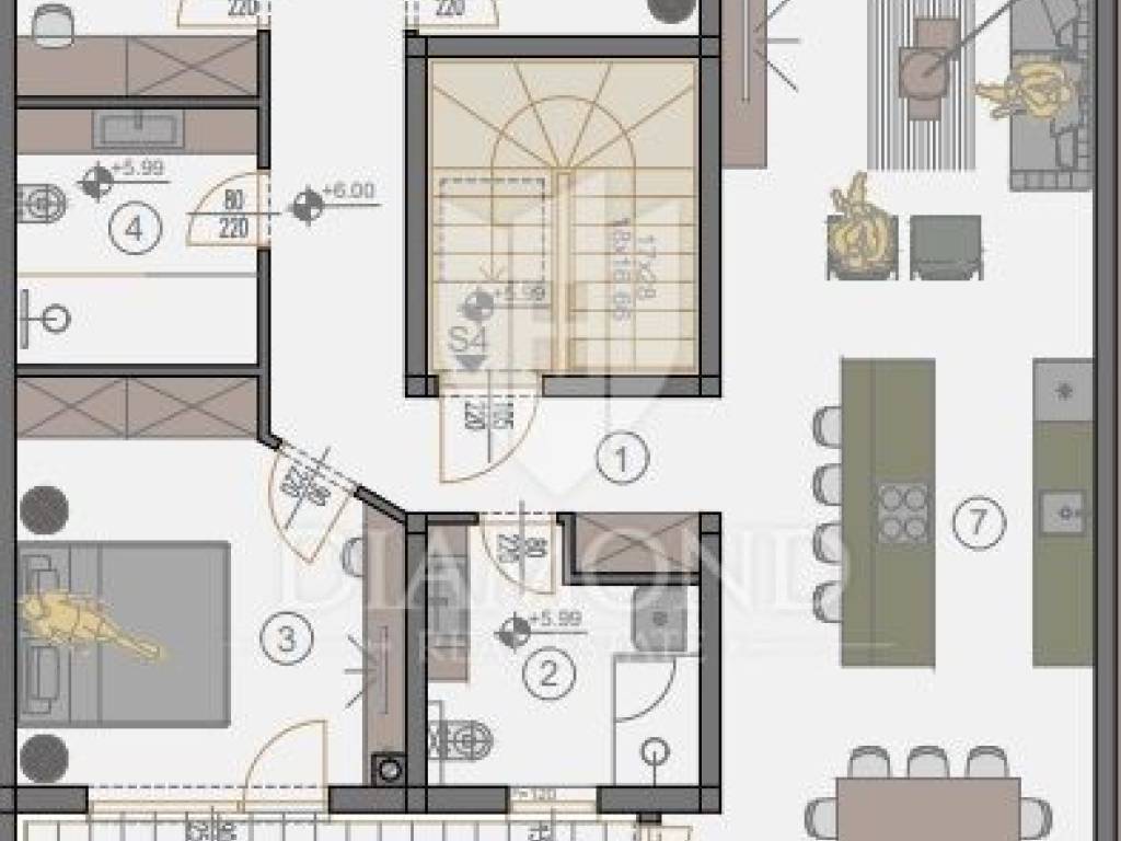 The apartment is located on the second floor of a residential building consisting of 4 apartments. The apartment consists of a hallway, a living room with access to the terrace, a kitchen and a dining room with access to the terrace, two bathrooms, three spacious bedrooms and a wardrobe, which makes the total square footage of the apartment 112.55 m2. The apartment also has a storage room of 2.09 m2, which is not included in the square footage of the apartment, as well as two parking spaces. The apartment will be finished by the end of 8 months/ 2024.