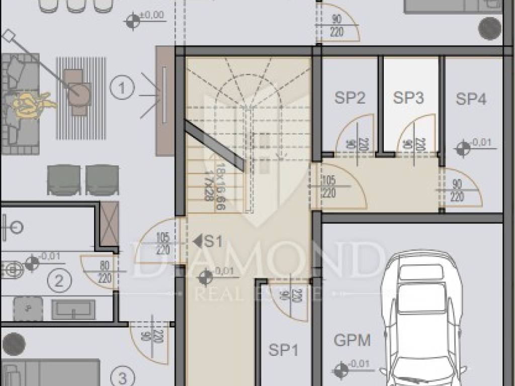 The apartment is located on the ground floor of a smaller residential building. The building consists of a total of 4 apartments. The apartment of 65.95 m2 consists of a living room with access to the terrace, a kitchen and a dining room with access to the terrace, a bathroom and two spacious bedrooms. The apartment also has a storage room of 1.26 m2, which is not included in the square footage of the apartment, as well as a parking space. There is a possibility of buying a garage for an additional fee, as well as a garden plot. The apartment will be finished by the end of 12 months/ 2024.