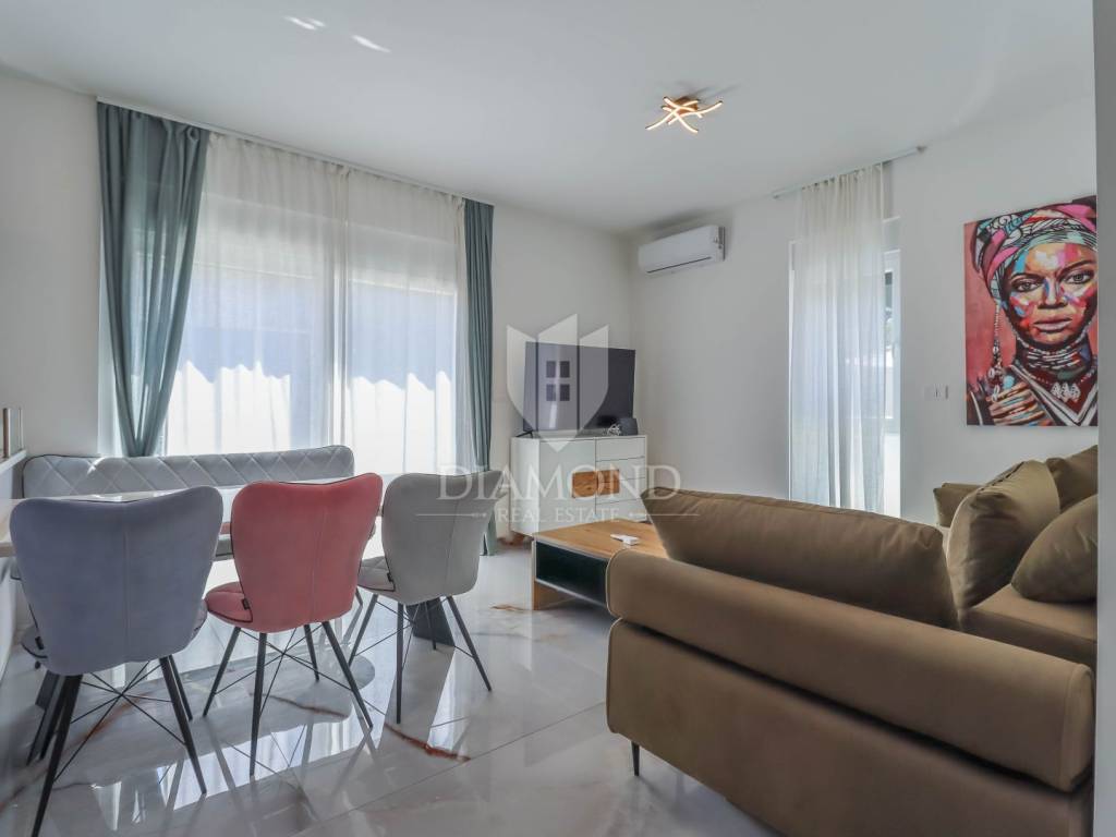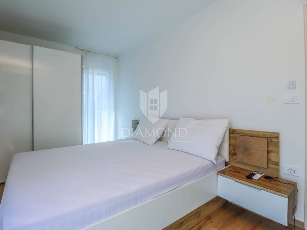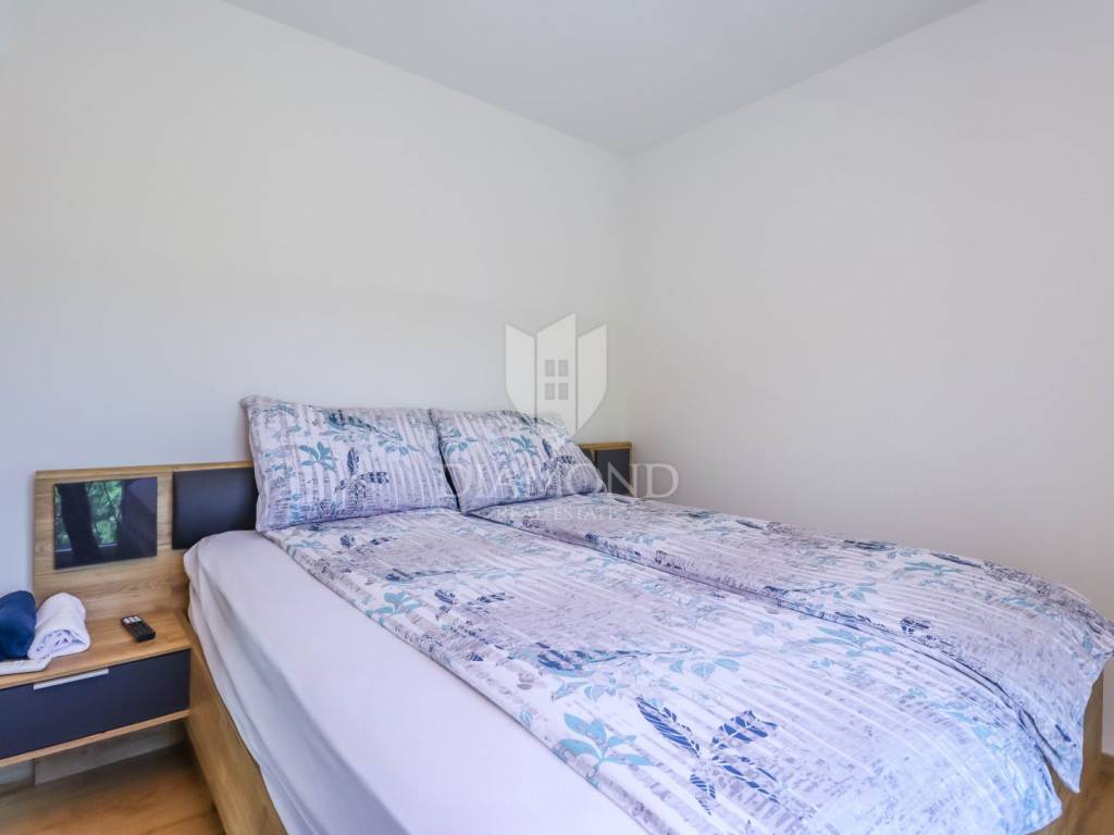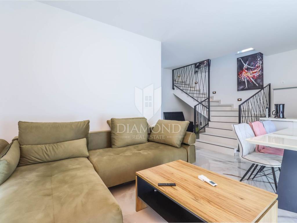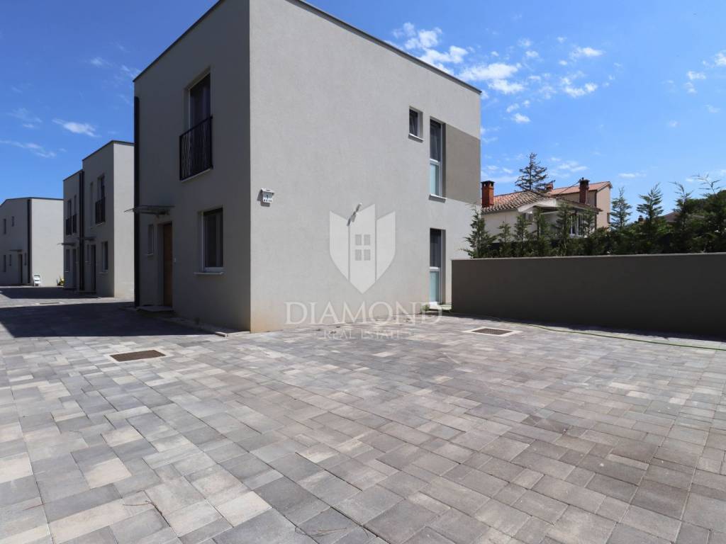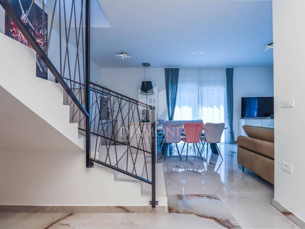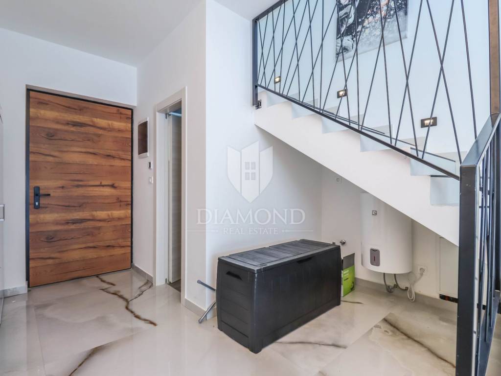 Istria - Pula We present to you this new house with a swimming pool in Pula, only 3 km from the sea and the city center in a quiet residential area. On the ground floor, the hallway leads to the bedroom, bathroom, kitchen with dining room and living room. On the first floor there are two more bedrooms and a bathroom. Every room is air-conditioned and there is underfloor heating in the bathrooms. The house is sold with all equipment and furniture.