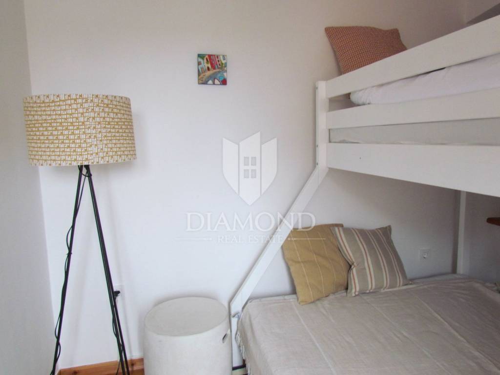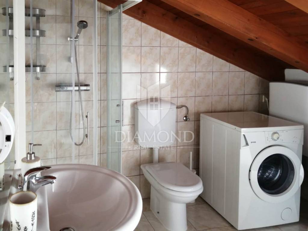 The apartment is located in a traditional Istrian stone house consisting of 3 apartments. The apartment extends through the 2nd floor and the attic, and the area of the apartment is 68 m2. The apartment consists of a living room, a kitchen with a dining room, 2 bedrooms, 2 bathrooms, a staircase and a corridor and 2 terraces, one on the 1st floor and the other on the attic. The terraces are ideal for socializing and enjoying the wonderful and open view of the sea and the beautiful Istrian landscape.