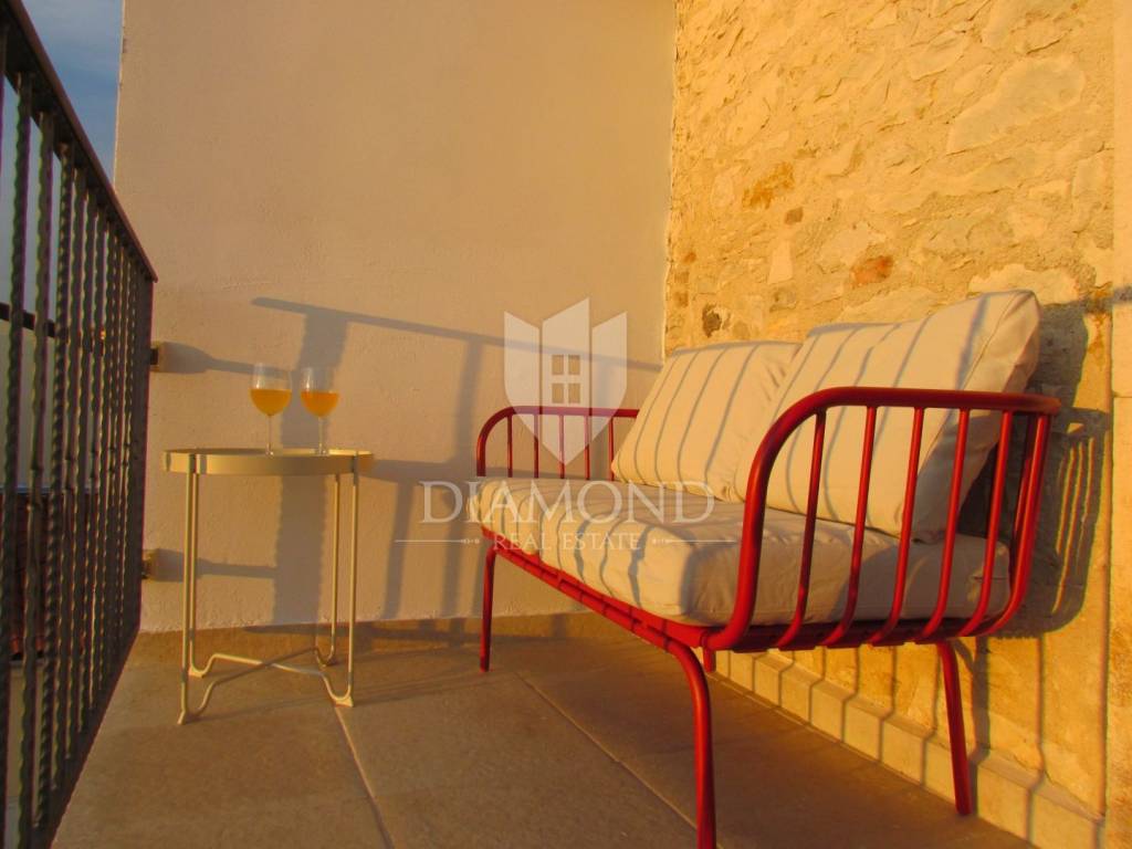 A renovated apartment with a beautiful view in the center of Brtonigla is for sale.