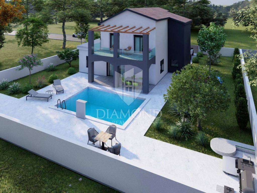 Near the picturesque town of Labin, a building plot of 552 m² with a completed project for a modern family house with a swimming pool is offered for sale.