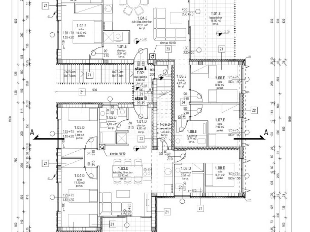 Stan površine 88 m² smješten je u novogradnji i sastoji se od tri spavaće sobe, dva kupatila, kuhinje s blagovaonicom i dnevnim boravkom u otvorenom konceptu. Posebna prednost ove nekretnine je velika krovna terasa s prekrasnim pogledom, savršena za uživanje u sunčanim danima i večernjim opuštanjima.