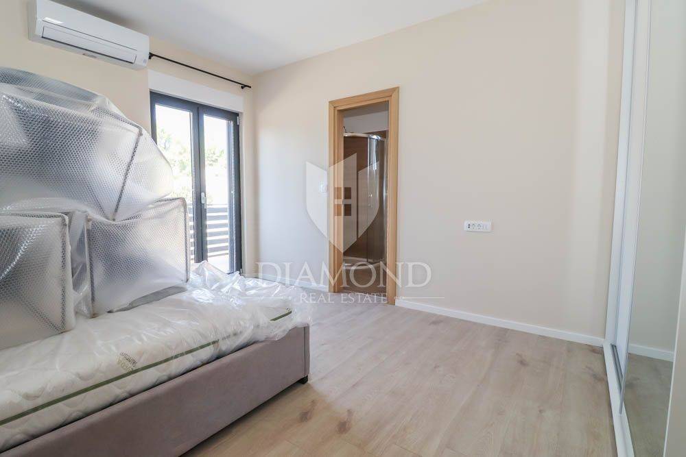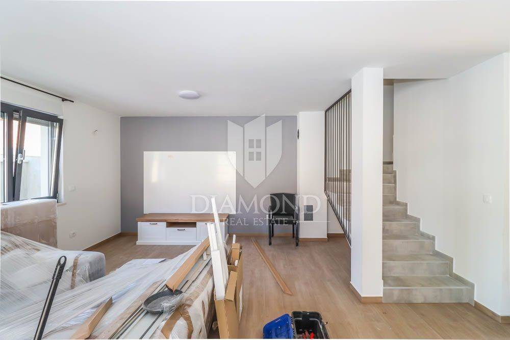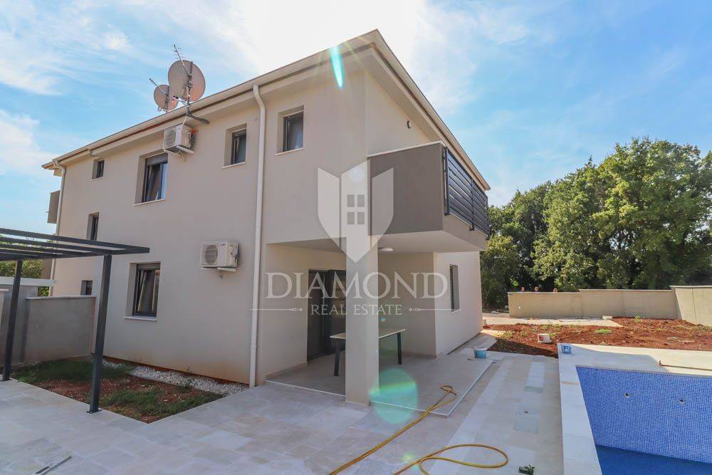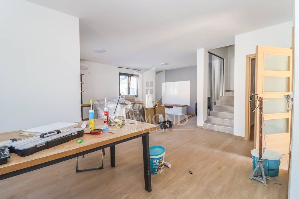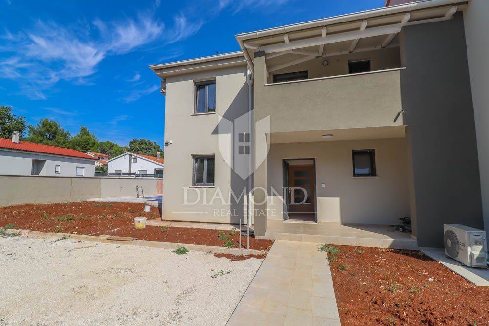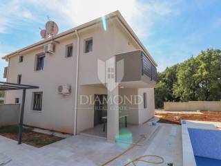 This new building is for sale, located in a quiet place near the sea and the forest. Excellent transport links, Medulin is only a few minutes away, while Pula and the airport are less than a 10-minute drive away. The sea and beaches are only 400 meters from the house. All necessary facilities for life are located in the immediate vicinity. The house is surrounded by holiday homes and the semi-detached building contains three apartments on the other side.